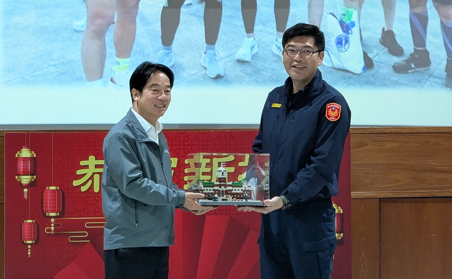【記者林志青/台北報導】總統賴清德今天上午先後前往北市中正一、中正二分局慰勉,頒發春節加菜金慰勞員警辛勞,分局也回贈客製化總統府樂高。賴清德表示,行政院已核定修正「警察人員警勤加給表」,調高刑事加成及繁重加成上限,讓全國員警受惠;賴清德也期盼警察遇民眾求助,「我們要馬上辦,馬上辦好!馬上服務,馬上解決問題!」