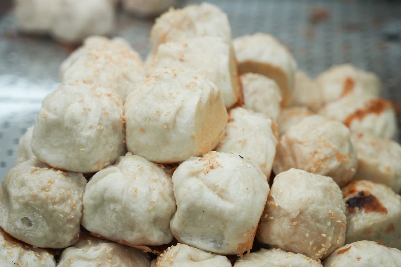 賞完花,傍晚再到山下士林夜市大啖米其林必比登美食!夜市內的老字號「鍾家原上海生煎包」,一到下班下課時間,排隊人潮湧現,大家幾乎都一袋一袋的買,每個生煎包底部都煎得相當酥脆,提供高麗菜和鮮肉2種口味,一顆20元。