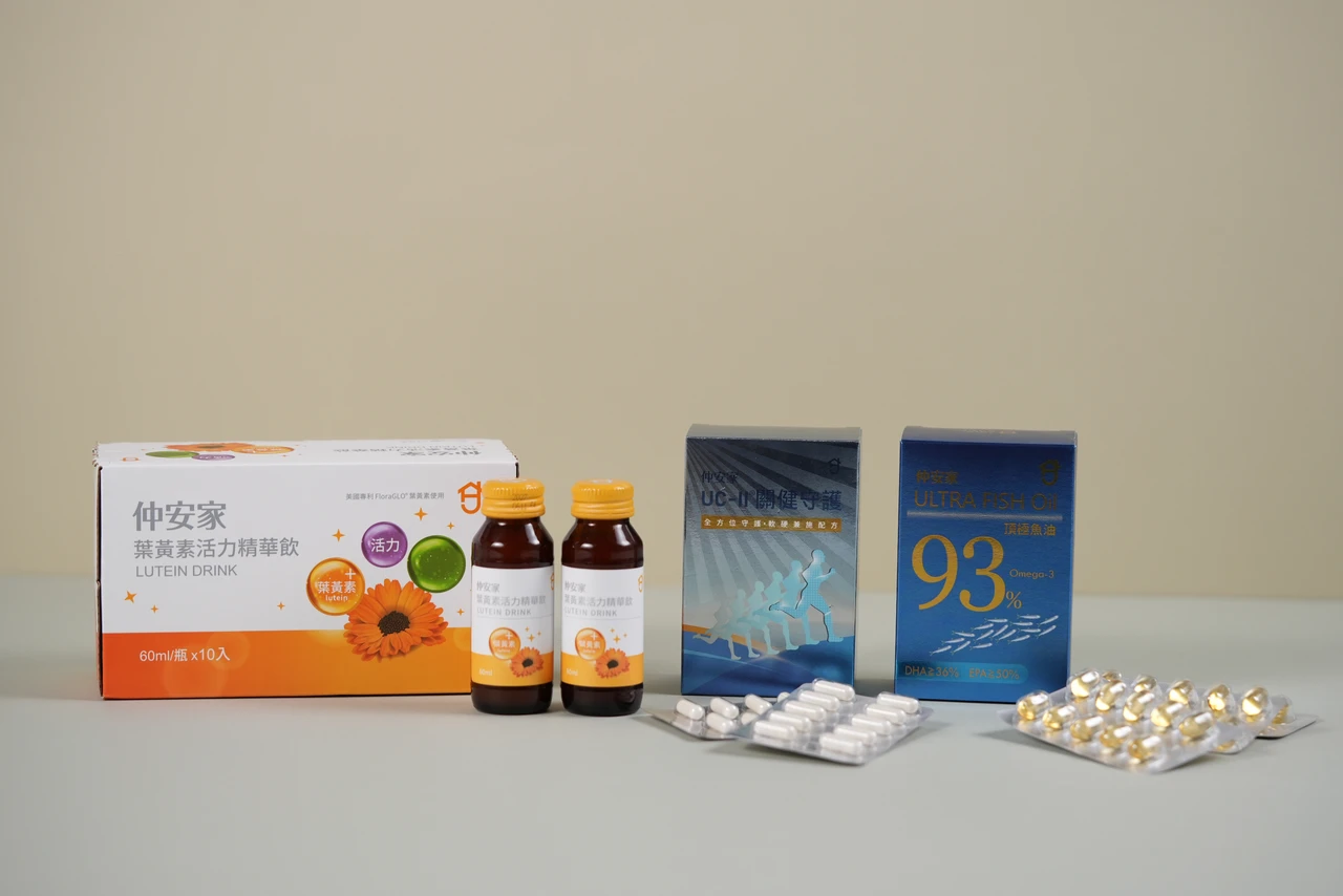 母親節「全方位守護組」仲安家鎮牌三寶:葉黃飲、UC-II和魚油套裝組買2送1,現省4148元。