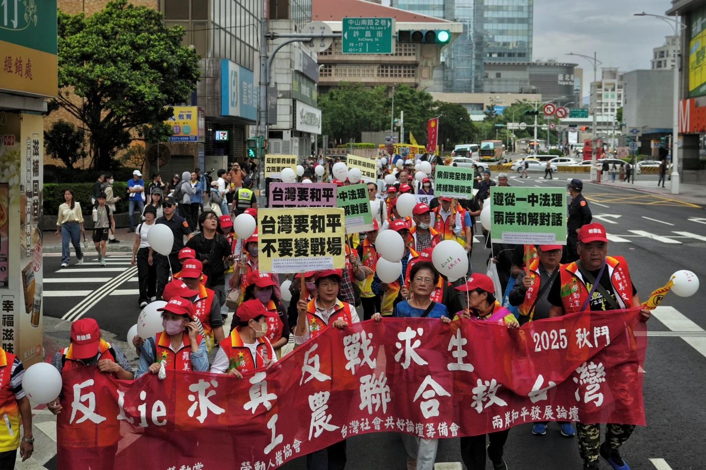 今年秋鬥活動,訴求反軍購、反戰及兩岸和平,並特別印製川普、賴清德肖像看板,諷刺寫上「軍火販子」、「舔美賣台」字詞,參與民團包括有勞動黨、左翼聯盟、人民民主、日日春協會、新移民勞動權益促進會、瓦斯公會等等,遊行群眾約百名。