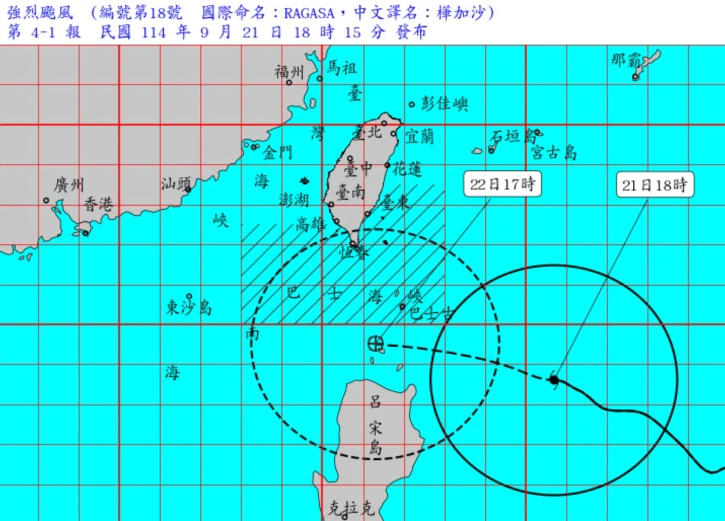 【記者陳怡文/台北報導】強烈颱風「樺加沙」持續朝台灣逼近,中央氣象署下午17:30發布樺加沙「海上陸上颱風警報」,陸警範圍為恆春半島,交通部分,國內線取消18架次,國內海運2航線計3航次停航,省道15處列注意路段;景點部分,觀光署5風管處所轄10處景點封閉,林保署森林遊樂區太平山自今(9/21)日17時起休園,雙流、墾丁、知本、池南自明天(9/22)8時起休園。