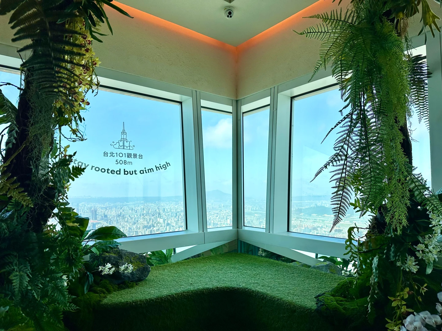 像是在101樓目前正推出年度特展《蕨蘭之美 FERNS AND ORCHIDS OF FORMOSA》,邀請花藝大師、CNFlower西恩創辦人凌宗湧策畫,以台灣蕨類與蘭花的姿態與生命力為靈感,將自然的細膩之美帶入城市之巔,打造宛如雲端秘境的觀景體驗。每日限量400席預約入場。