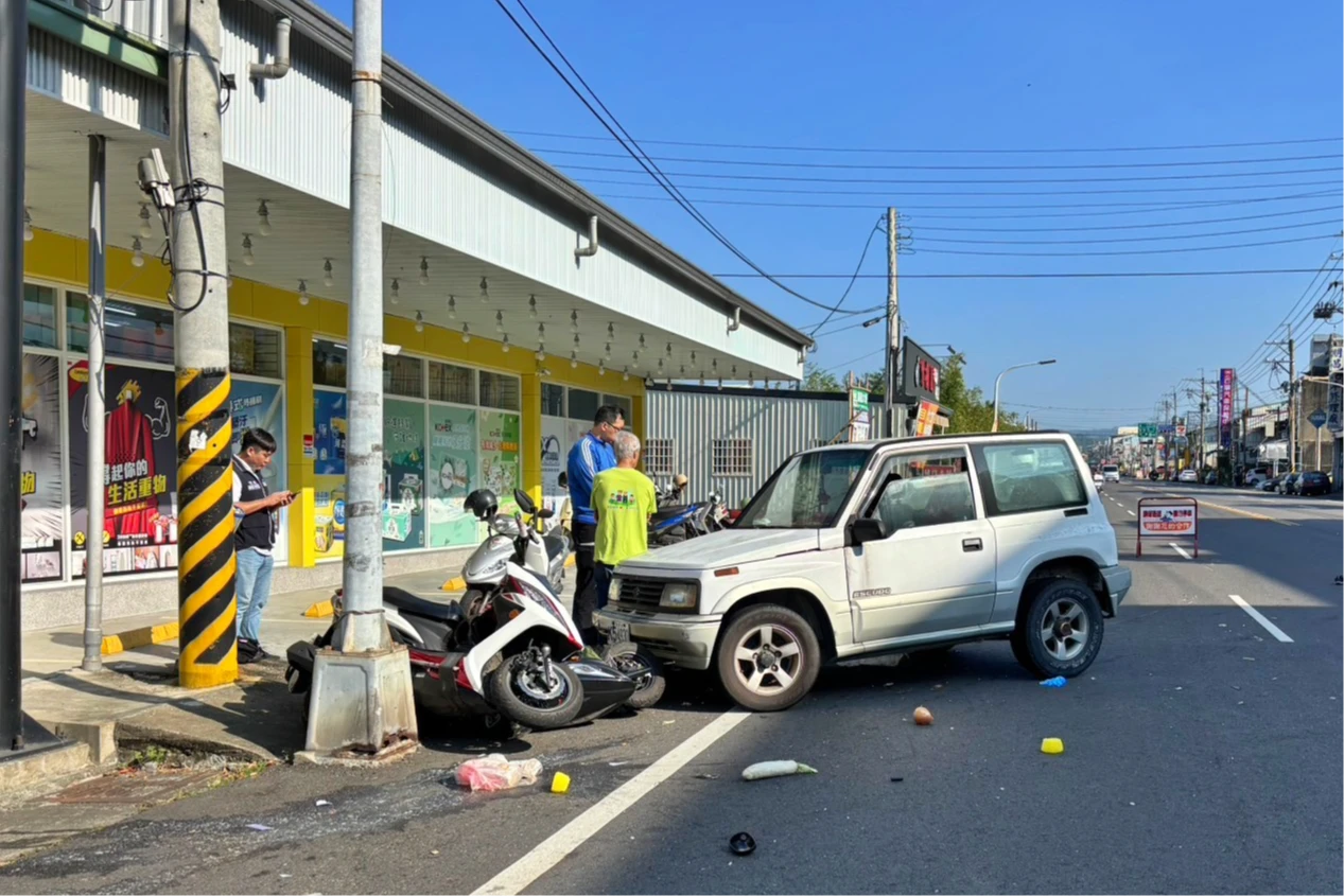 竹崎警分局調查,這起事故發生在今天上午8時30分左右,張姓男子駕車沿台三線北往南直行內側車道,疑因未注意前方路況,先是追撞由林姓婦人(約73歲)所騎乘的機車,再撞擊外側車道、許姓男子所騎乘的機車,連人帶車推擠到路桿才停下,造成2名騎士雙雙倒地受傷。