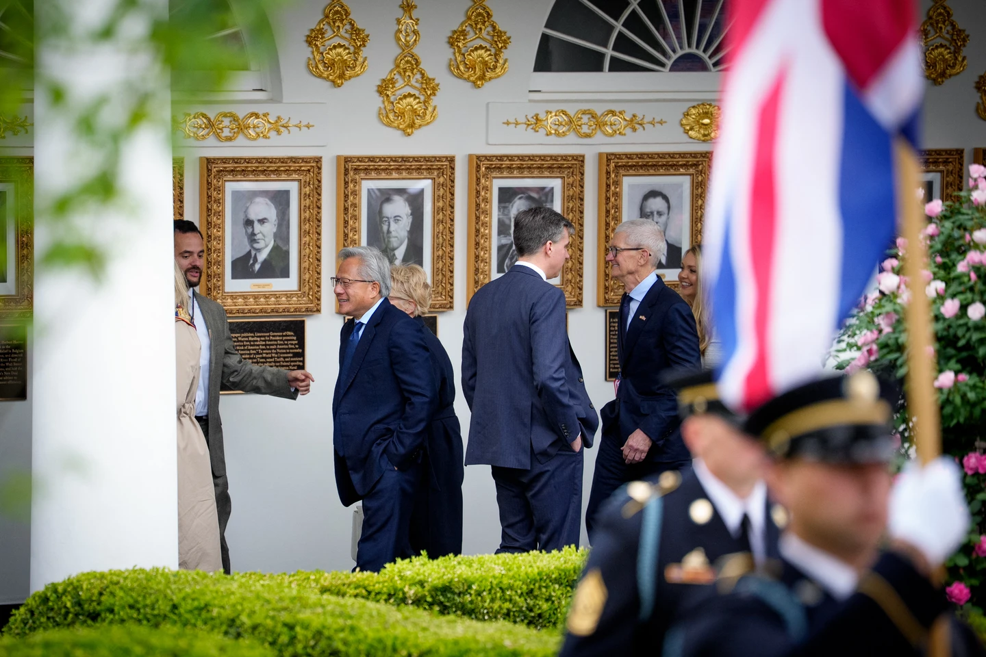 現場除了黃仁勳、貝佐斯(Jeff Bezos),還包括蘋果執行長庫克(Tim Cook)、超微半導體(AMD)執行長蘇姿丰(Lisa Su)、Salesforce執行長馬克貝尼奧夫(Marc Benioff),以及Google母公司Alphabet總裁波拉特(Ruth Porat)。