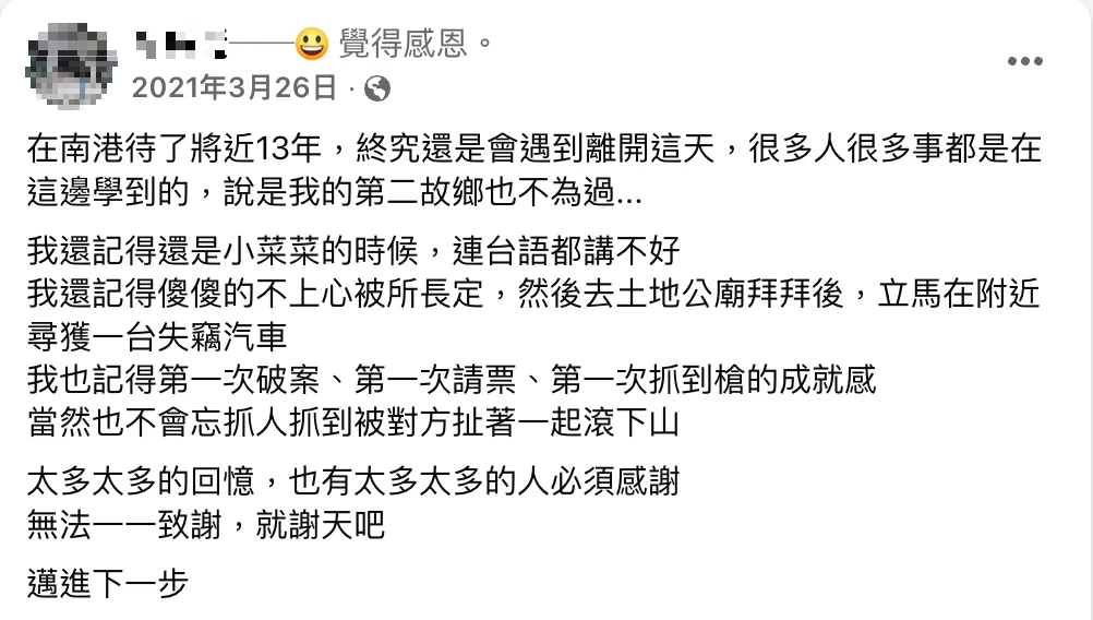 據了解,黃梓翔(40歲)在南港服務多年,2008年警專畢業就分發到南港任職警員,13年後陞任巡佐,2022年調派內湖大湖所副所長,2年後才平調回熟悉的南港所任職副所長。