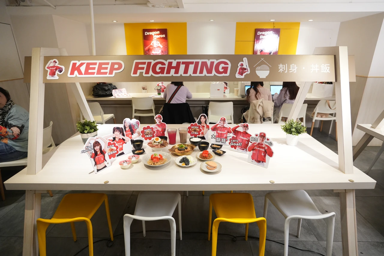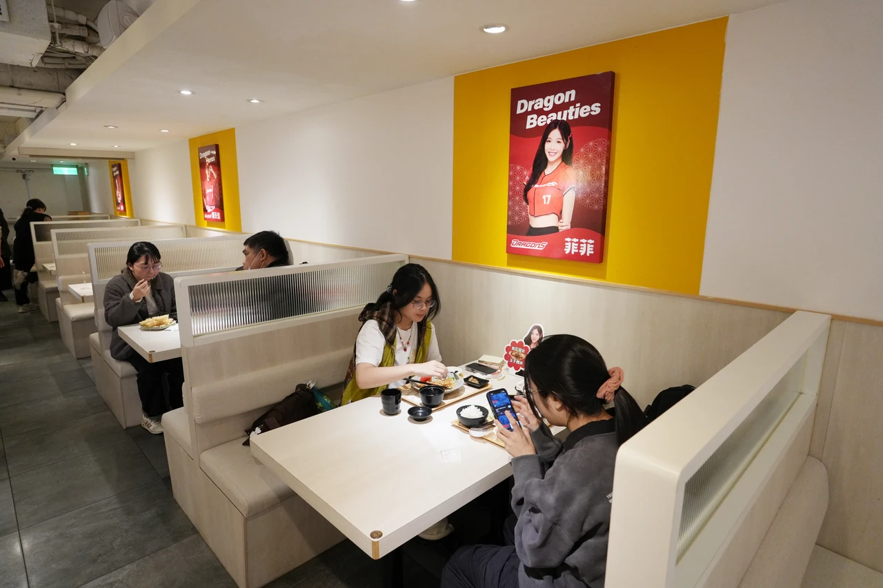 全台唯一主題限定店在西門町!定食8西門店店內除了有味全龍人氣球員李凱威、劉基鴻、郭天信等視覺外,還特別設置味全龍專屬啦啦隊「Dragon Beauties小龍女」成員Yuri、菲菲、沛沛的形象佈置,以及Yuri等身高人形立牌吸睛登場,搭配店內應援歌曲播放,從餐點到用餐氛圍都超熱血,粉絲快來拍照打卡!