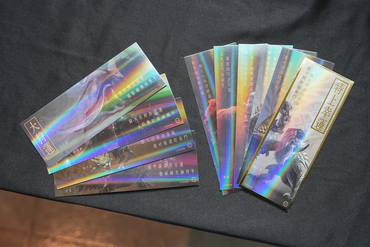 滿額贈則是從1月23日起,單筆消費滿600元即可獲得「魔物剪影便利貼」乙份;2月9日起,單筆消費滿1000元即可獲得「開運狩獵籤」一張,款式共10款,分為小吉、中吉、大吉、大狩運及特上幸運,皆隨機贈送。若抽中「特上幸運」者,可立即兌換500元折價券一張,數量有限送完為止。