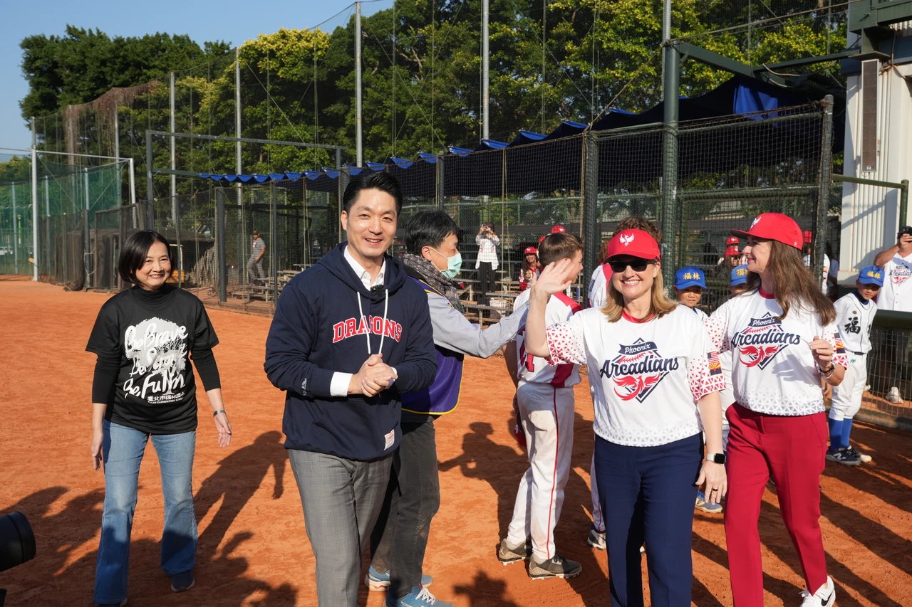 蔣萬安進一步說,東園國小棒球隊在去年一路打到威廉波特,讓台灣引以為傲,而福林國小則是多年來的棒球強隊,今天的交流不只是球場上的分數,棒球就是彼此共同的語言,「你們說英語、我們說中文,但我們都會說HOME RUN。」