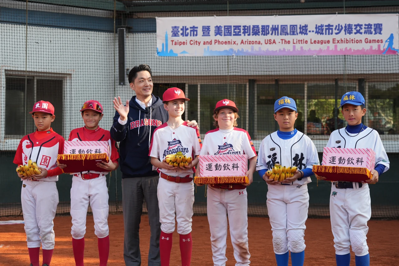 【記者許皓婷/台北報導】台北市長蔣萬安今(13)日前往新生公園棒球場,與美國亞歷桑納州鳳凰城市長Kate Gallego共同擔任開球貴賓,為2026年美國亞利桑那州與台北市少棒隊交流賽揭開序幕。蔣萬安更幽默笑說,鳳凰城以亞利桑那響尾蛇隊聞名,台北則以101和美食聞名,「如果你們覺得我們的投手難以擊敗,那就等著嚐嚐台北的臭豆腐吧!那才是真正的挑戰!」