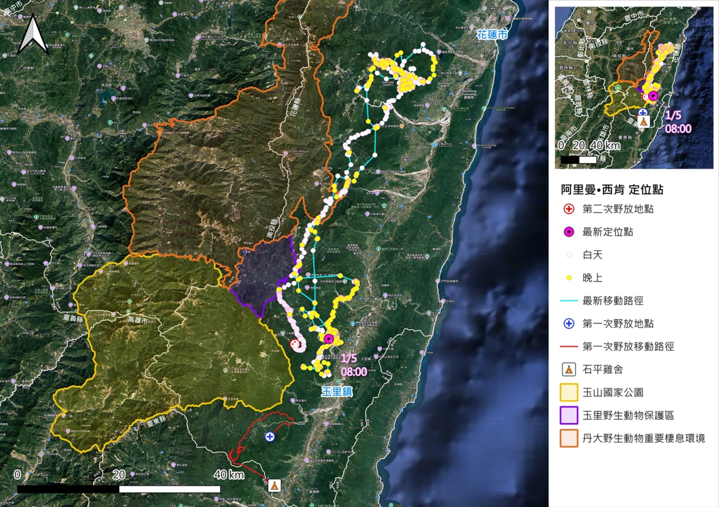 花蓮分署說,山里部落周邊山區海拔只有三百多公尺,但地形陡峭、隱蔽性高,「阿里曼」白天隱匿在峭壁森林,夜間則伺機到養禽場覓食。