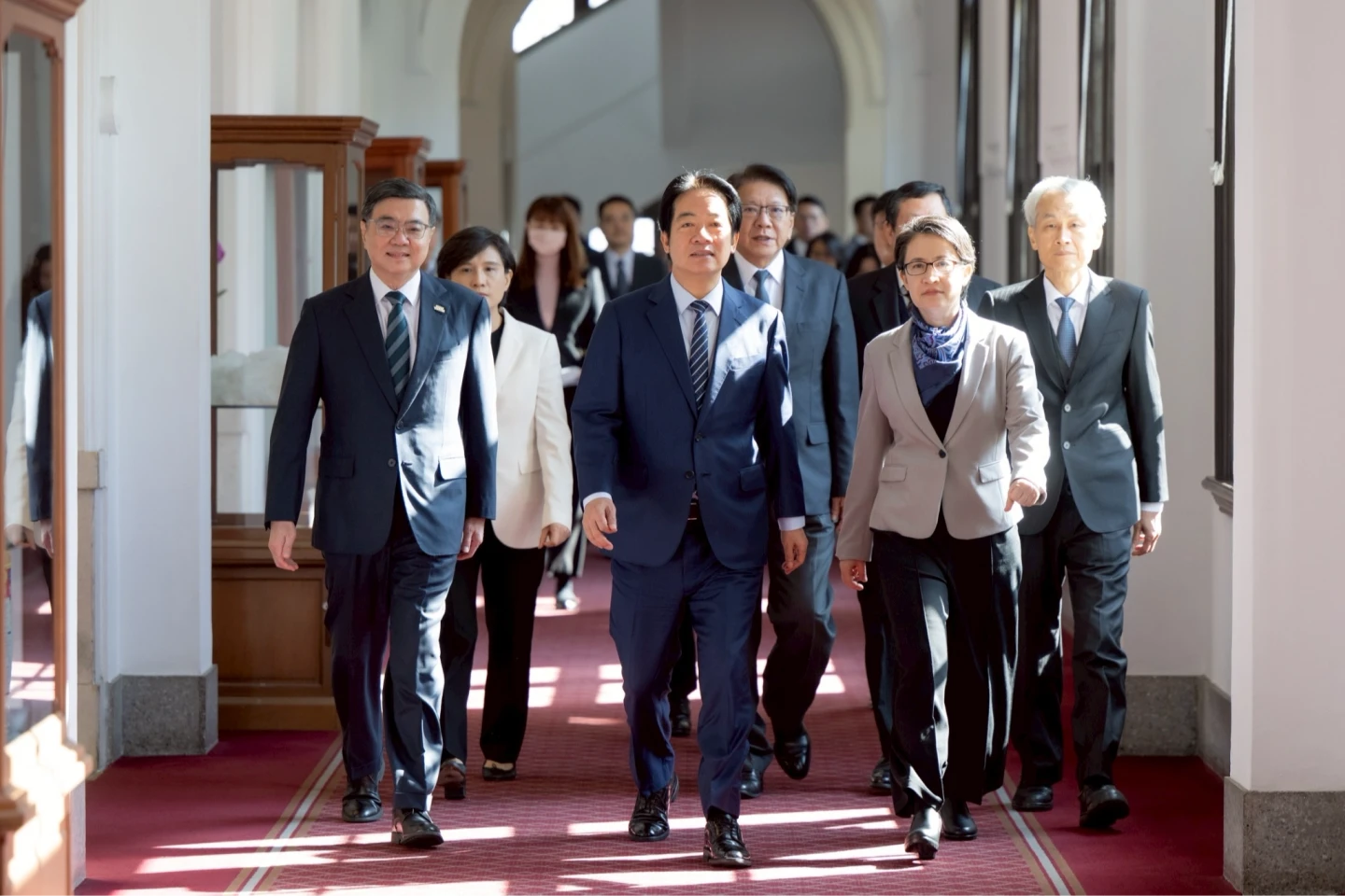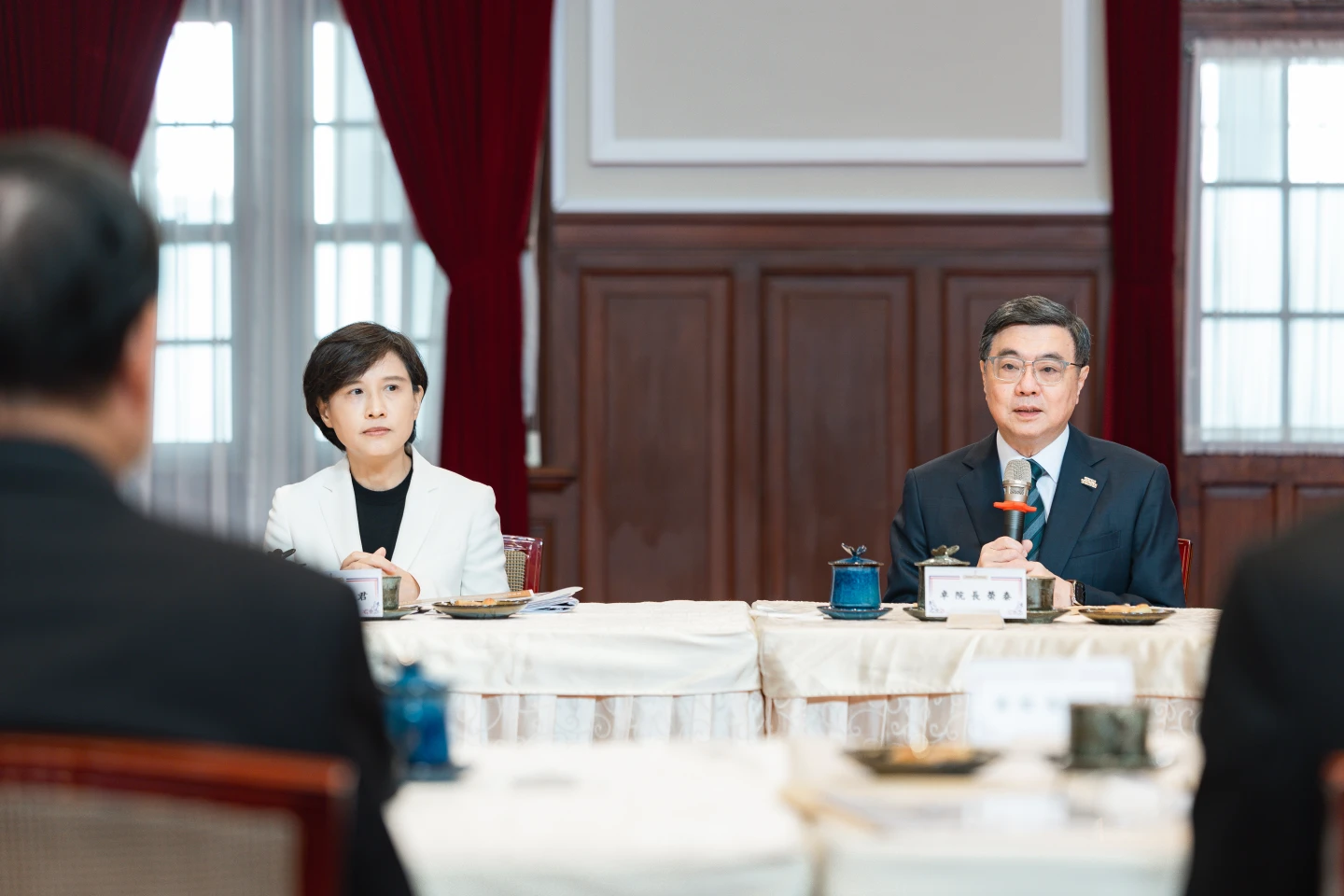 今天參與茶敘的首長包括:行政院長卓榮泰、考試院長周弘憲、行政院副院長鄭麗君、考試院副院長許舒翔。副總統蕭美琴、總統府秘書潘孟安及副秘書長鄭俊昇也在座。