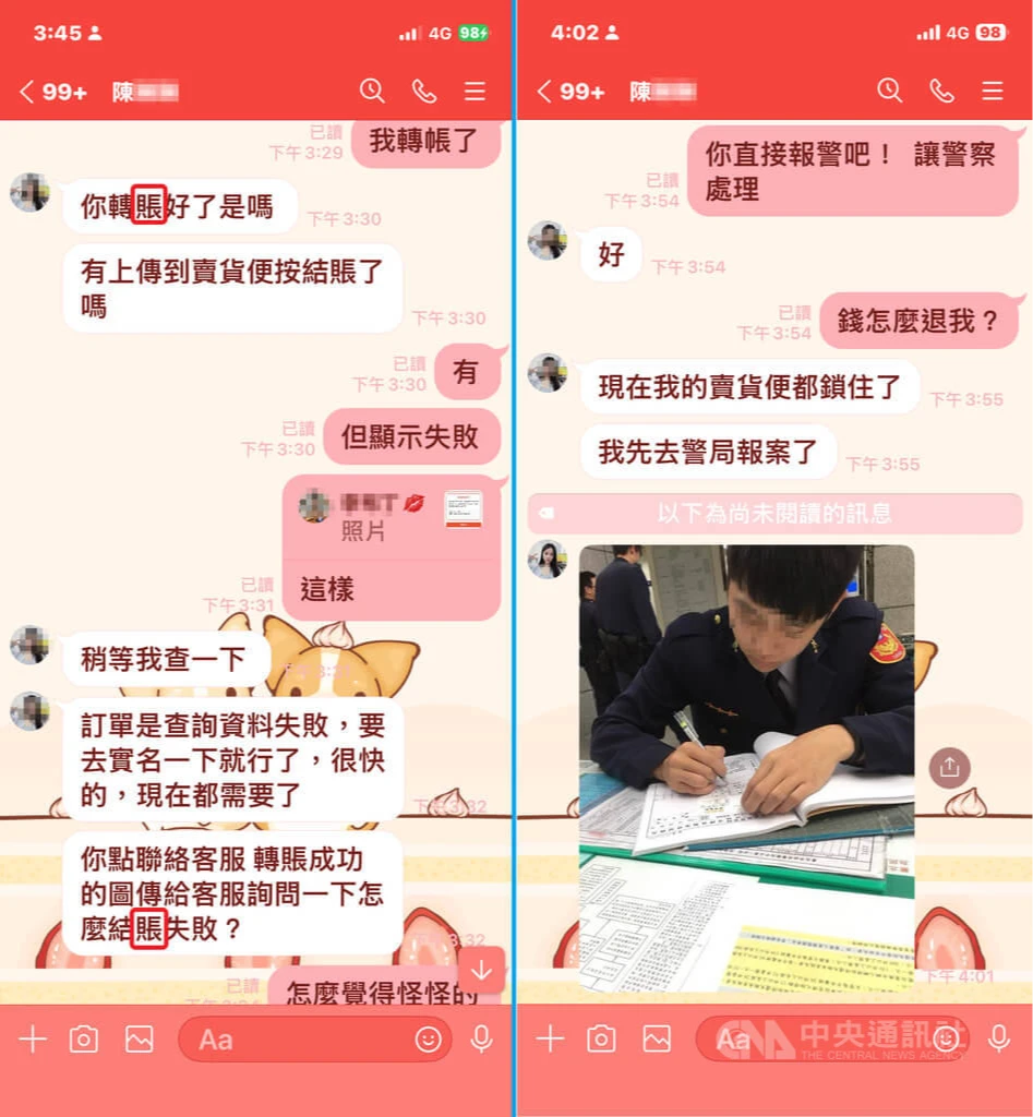 當李女起疑時,對方立刻謊稱「結帳失敗」導致賣場被鎖,甚至傳送疑似AI生成的警局報案筆錄照片進行威脅,要求她配合假客服進行「帳號驗證」。所幸李女機警撥打165專線,才識破這場騙局並免於更大的損失。