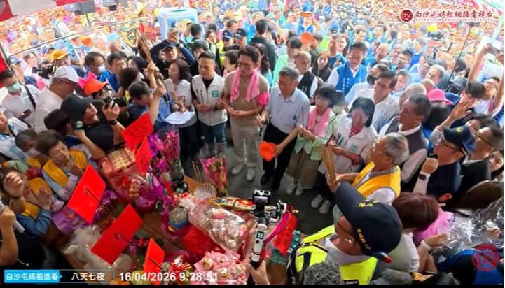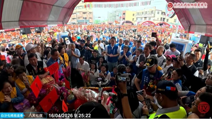 【記者陳亮諭、盧麗蓮/綜合報導】苗栗通霄白沙屯拱天宮媽祖鑾轎「粉紅超跑」今(16日)上午9時20分停駕北辰派出所,藍白綠政治人物都來了,其中民眾黨前主席柯文哲夫婦也現身祭拜,停留至9時45分起駕前往朝天宮。