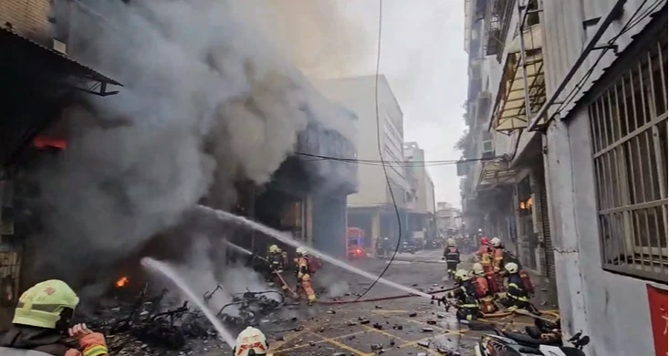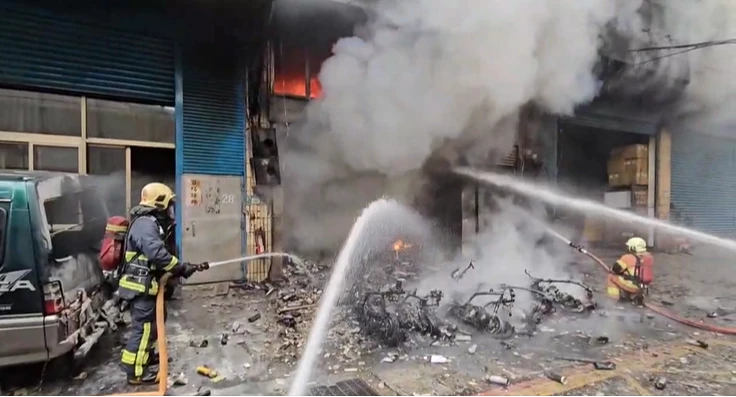 據悉,新北市三重區光復路2段88巷內,一棟3層RC頂加工廠,今天上午10時24分左右,1樓冒出大量濃煙,旋即火舌竄燒一發不可收拾。新北市消防局獲報出動各式搶救車輛64車、消防員160人趕抵,現場已陷入火海,另傳出有4名員工受困。