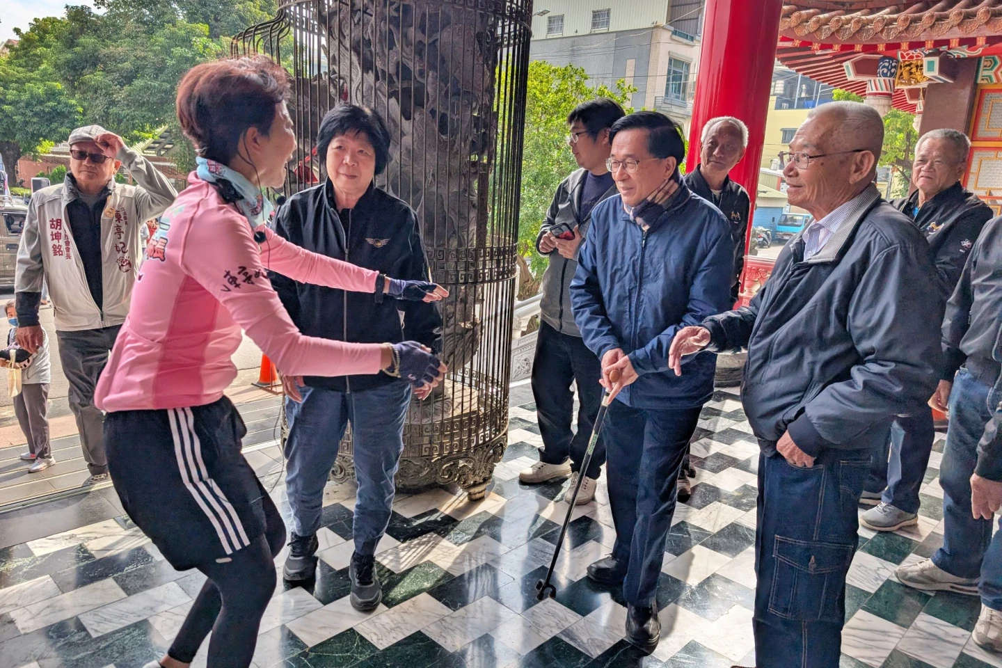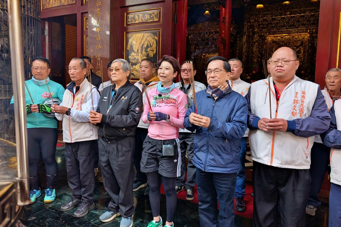 陳亭妃鐵馬隊今天行經關廟區,前往當地信仰中心「山西宮」參拜時,意外遇見前總統陳水扁。