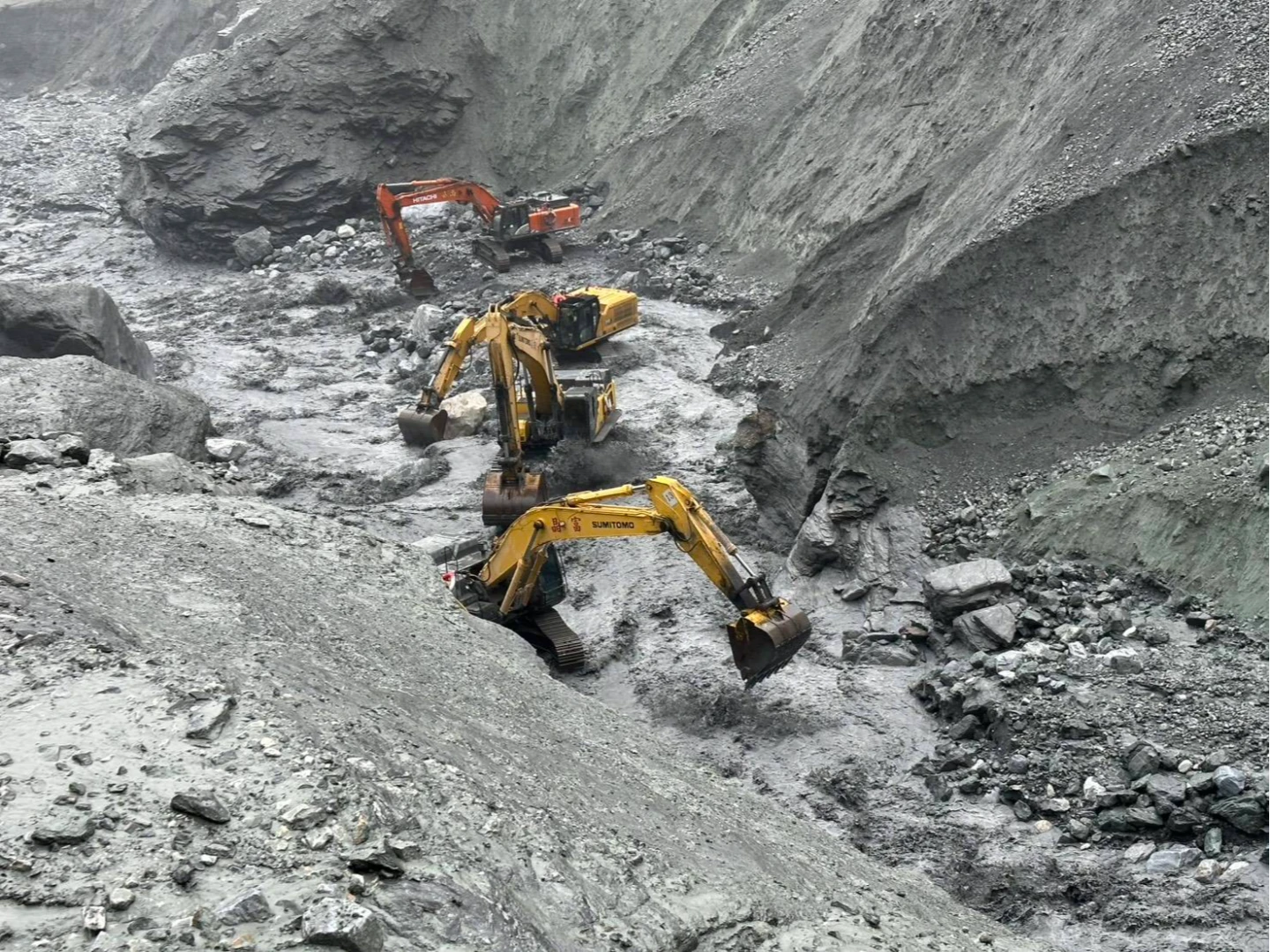有片|開挖馬太鞍溪堰塞湖!4重機具瞬遭土石吞沒 施工隊冒險登壩頂降畫面曝
