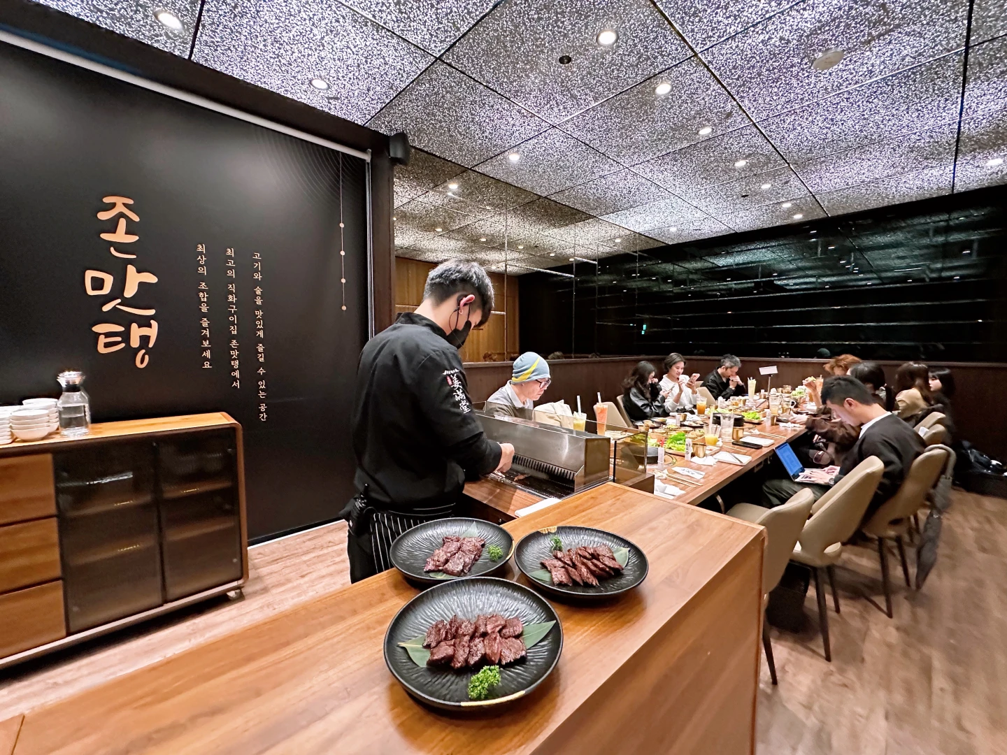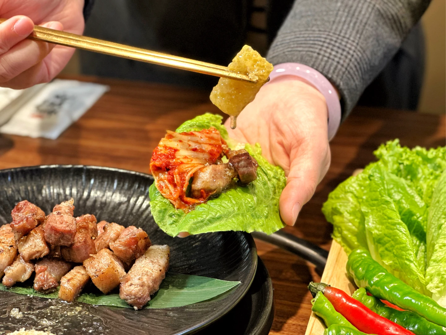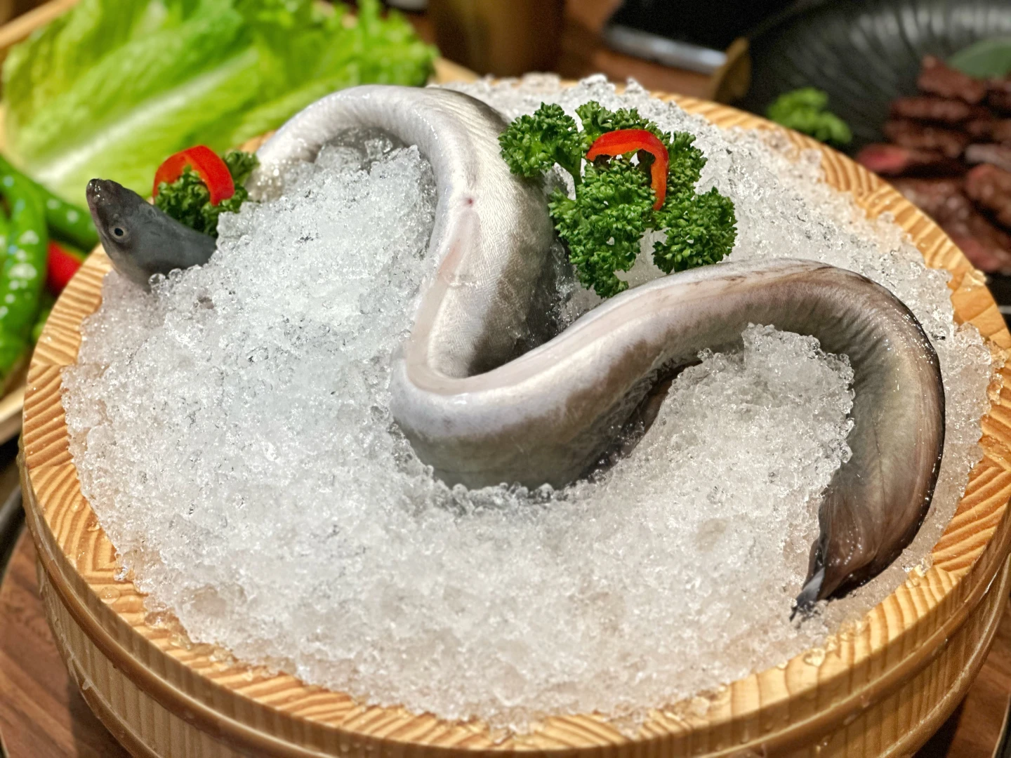 「韓國麻油鹽烤白鰻」特別引進每日現宰的新鮮白鰻,由代烤職人刷上一層韓國麻油鹽,烤至外皮金黃酥脆、肉質Q彈。享用時以海苔與紫蘇葉包裹鰻魚,佐以薑絲與專屬鰻魚醬汁,一口咬下,展現正宗韓式高級料理精髓。除了3大必吃,還吃得到日本A5和牛、極品厚切雙味牛舌、BBQ牛橫膈膜、松露蔥鹽雞松阪等肉品。