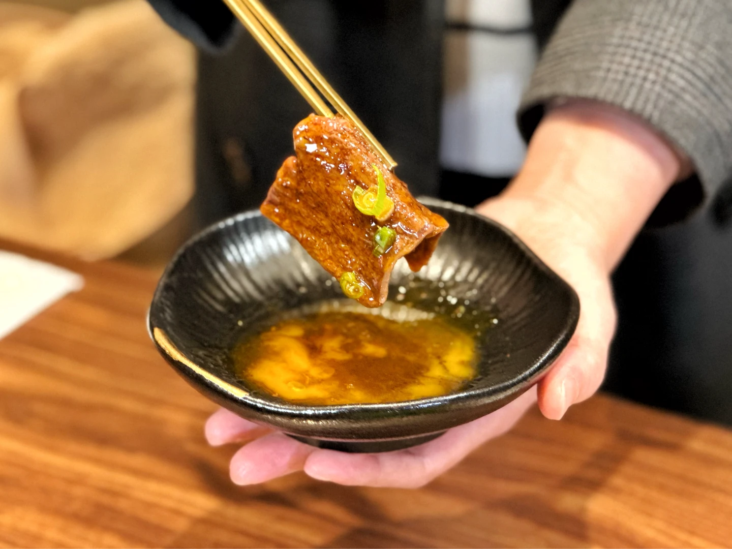 「牛喜壽喜燒水炊鍋」主打關西風壽喜燒與博多水炊鍋,台北101店以板前22席座位呈現,其中水炊鍋推薦搭配101店限定新品「和牛餃」,佐酸橘醬油與柚子胡椒,最後還可加點蛋與蔥花做成雜炊收尾。共22席,不可預約,採現場候位。