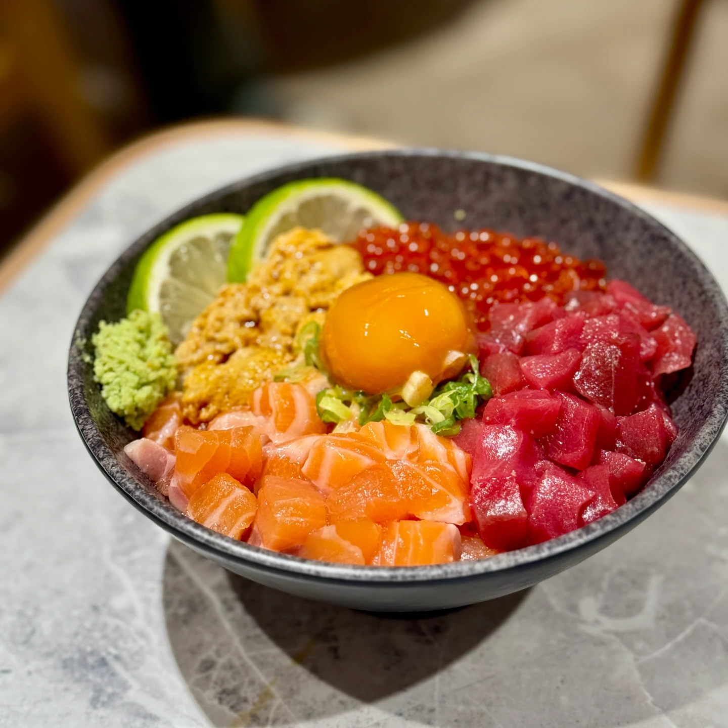 同步登場的「長浜魚屋」,16席板前座位,呈現日本福岡傳統屋台樣貌。每週2次自日本漁港空運直送新鮮海產,將產地風味完整呈現。招牌「黑鮪魚丼」一次集結愛媛縣黑鮪魚大腹、中腹、赤身與鮪魚泥;而備受熟客推崇的「隱藏版豪華海鮮丼」,豪氣匯集多達10多種當季旬味海鮮,包含鮑魚、干貝、黑鮪魚等高檔食材,700元有找即可品嚐!歡慶101店開幕,推出期間限定「DX月見四喜丼」集結海膽、黑鮪魚、鮭魚與鮭魚卵4大人氣食材。