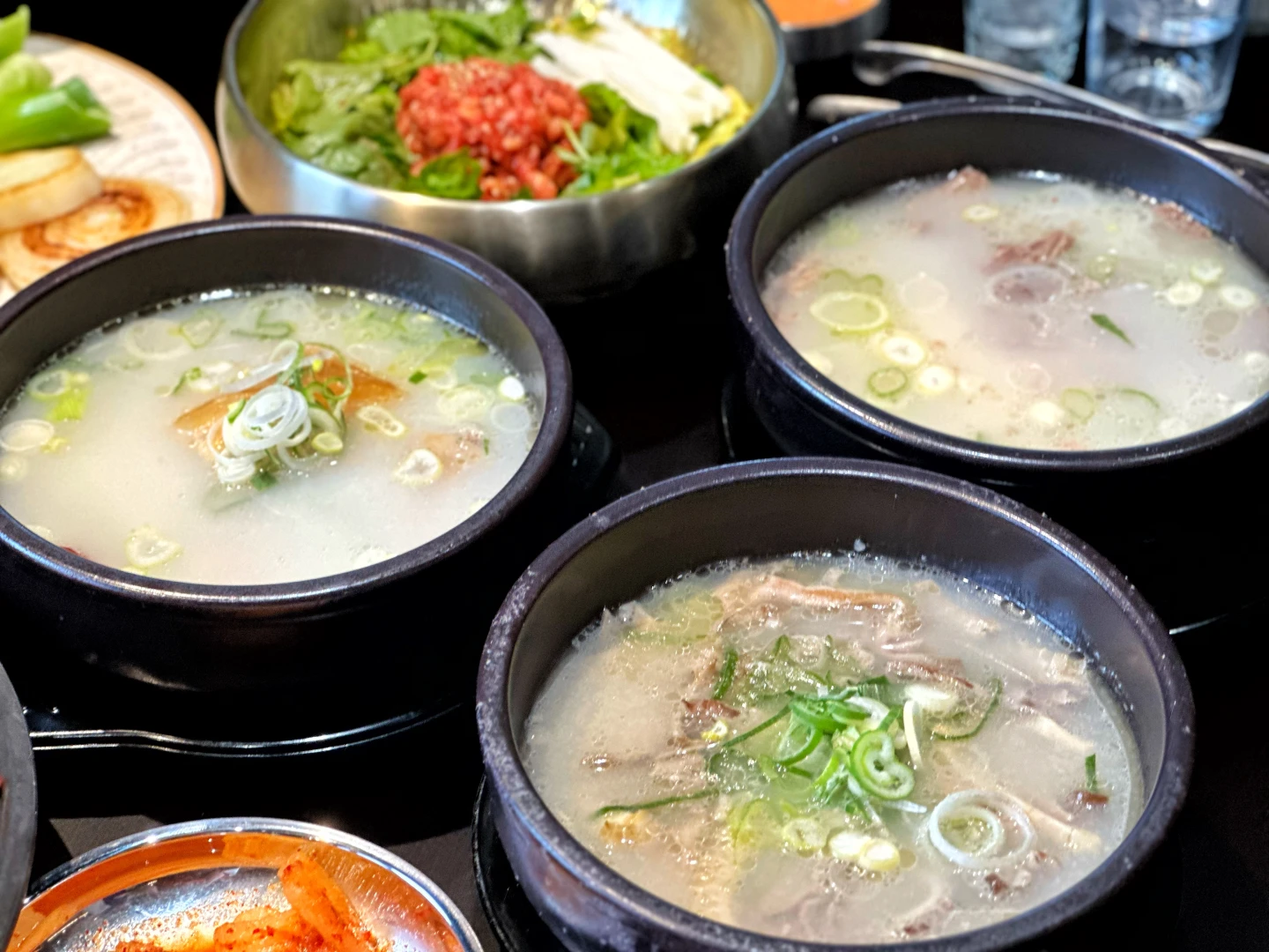 推薦料理涵蓋牛腸火鍋、醒酒湯、特色菜、炙烤下酒菜與招牌生牛肉料理。招牌必點「牛腸火鍋」,加入韓國總店秘製辣醬預拌入味,入鍋後內臟膏脂與醬香層層釋放,中鍋(2-3人份)1280元、大份(3-4人)1680元;「牛腩火鍋」中鍋(2-3人份)1180元、大份(3-4人)1580元;醒酒湯系列「雪濃湯450元」、「牛內臟湯420元」、「牛尾湯380元」,以濃白湯底為核心,骨香與內臟鮮味層層堆疊。