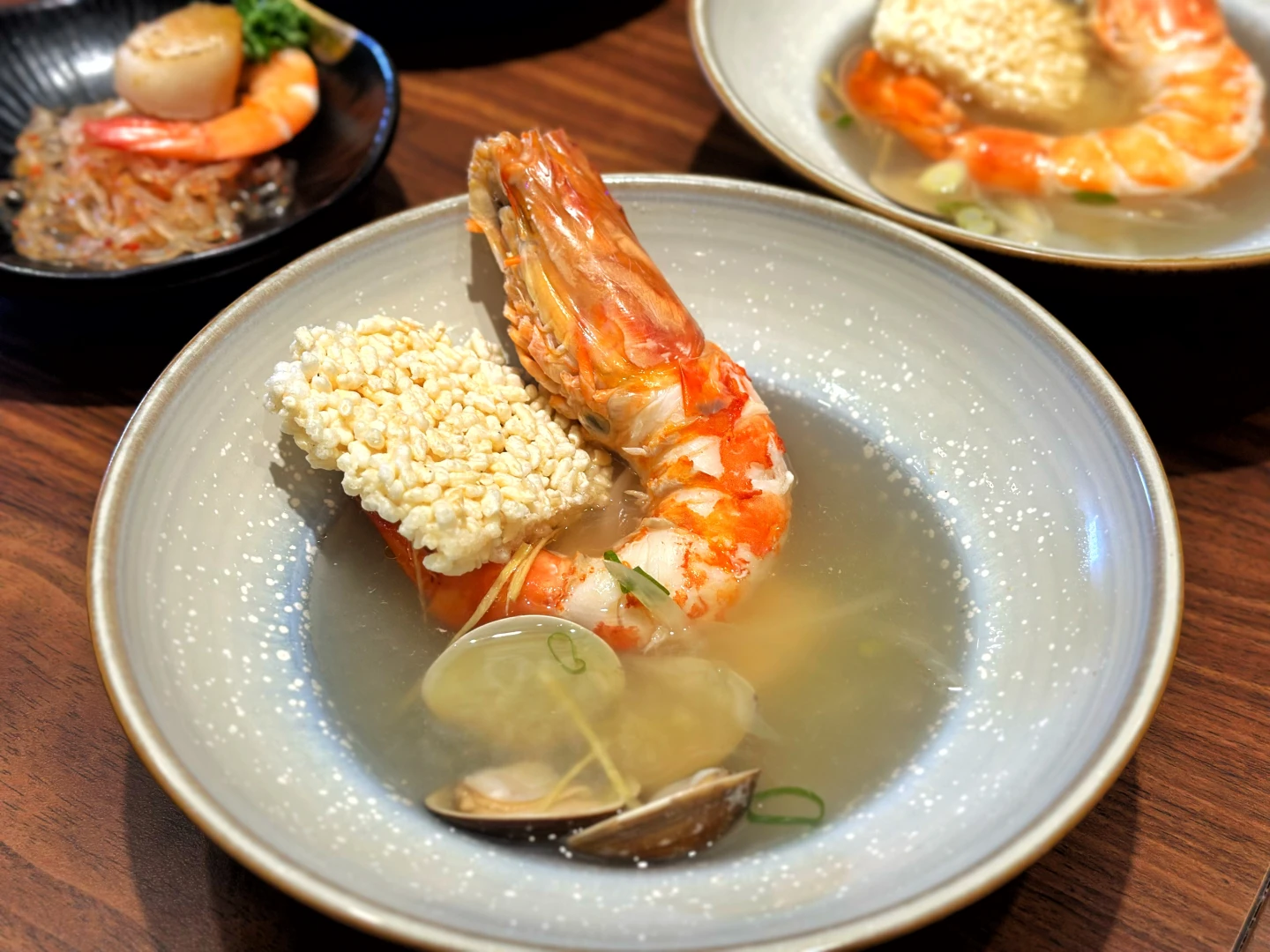 海鮮部分則有「柚香炙燒干貝鮮蝦」、「海虎蝦蛤蜊鍋巴湯」,特色料理「明太子三重起司蒸蛋」、「韓式鮑魚水冷麵」及「三鮮海味煎餅」,最後甜點以視覺感滿分的「韓國雪冰六宮格」與「韓式雙柚醋飲冰沙」收尾。包廂費用25,000元(最多可容納14人),可另加價微醺調酒、韓國燒啤或星空清河氣泡酒。