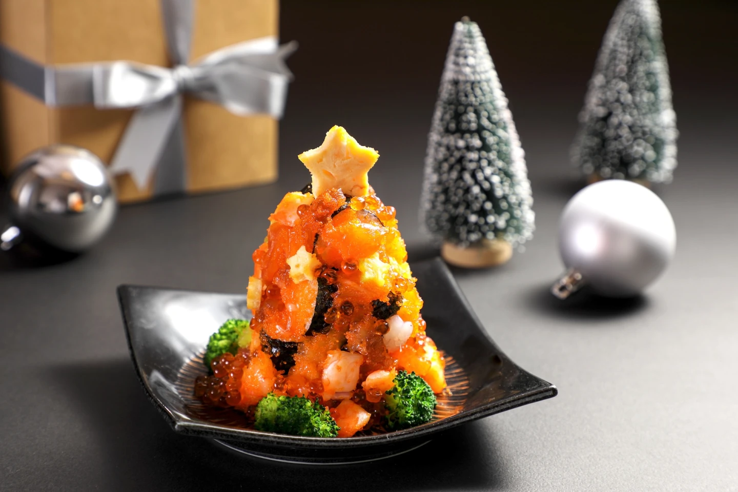 歡慶耶誕節到來,合點壽司、承知助by合點壽司兩大品牌同步推出冬季聖誕活動,4人同行消費滿1,888元,贈送一份以星星玉子燒點綴的「合點聖誕壽司(售價388元)」,能吃得鮪魚、鮭魚、甜蝦、鮭魚卵、飛魚卵等10種食材,亦可於2個月內用餐兌換。