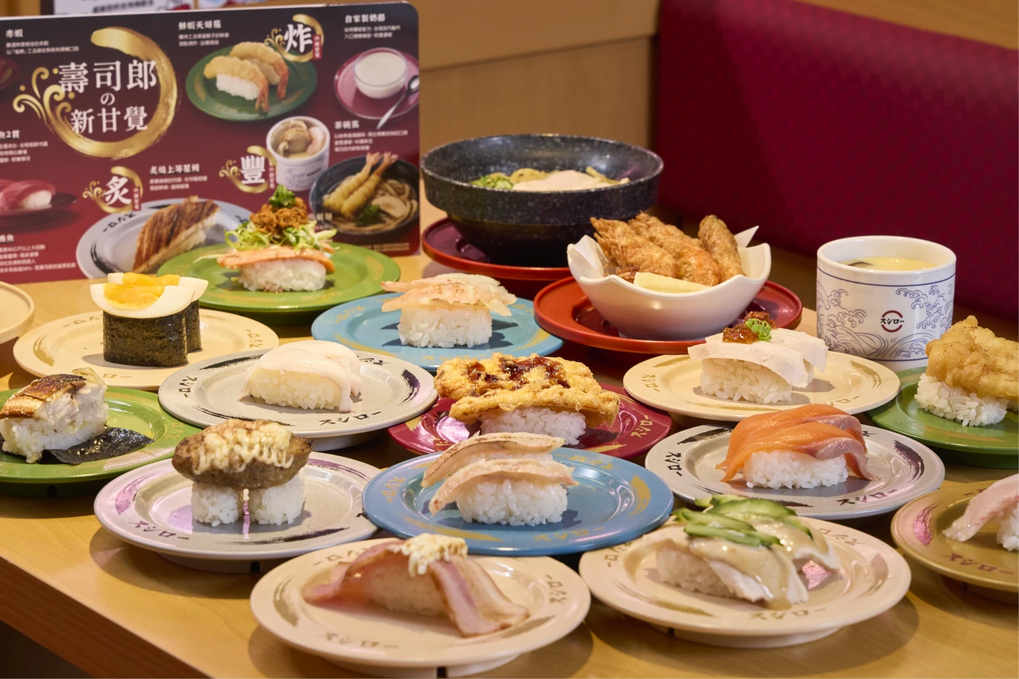台灣壽司郎宣布推出全新菜單「壽司郎の新甘覺」,將常態商品增至185道,涵蓋握壽司、軍艦及各式副餐,並於全台門市導入7段式盤色價格帶,由現行40/60/80/100元4段價格擴充為30/40/50/60/70/80/100元7段盤價,將基本款、創作料理與高等食材清楚分層,也讓顧客能以盤色直覺理解差異。顏色依序分為30元奶茶盤、40元紅盤、50元綠盤、60元銀盤、70元藍盤、80元金盤、100元黑盤。
