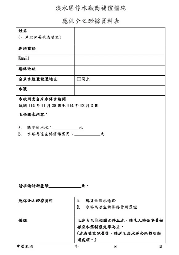 淡水停水逾3天惹民怨!補償措施出爐 申請至12/10