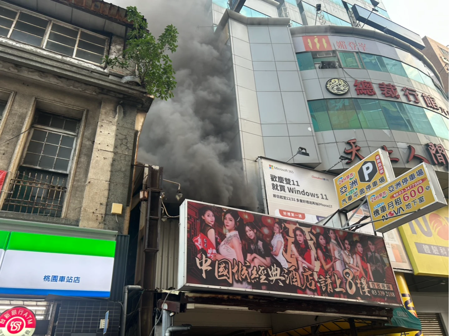 桃園火車站前商圈大火!濃煙狂冒畫面曝 警消急灌救