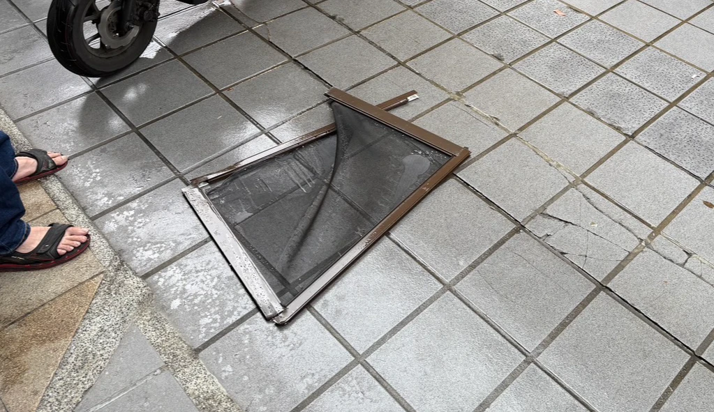 【記者林志青/新北報導】新北市板橋區長江路三段今天中午發生紗窗砸傷騎士意外。當時蔡姓女騎士(63歲)騎車外出,行經長江路往新海路方向時,突然被一片從天而降的紗窗,不偏不倚砸中頭部,蔡女當場倒地,民眾見狀急忙報警,所幸僅頭部擦挫傷,送亞東醫院包紮無大礙。警消查訪發現是14樓住戶的紗窗釀禍,初步排除人為因素,恐因老舊脆化不耐風雨墜落。