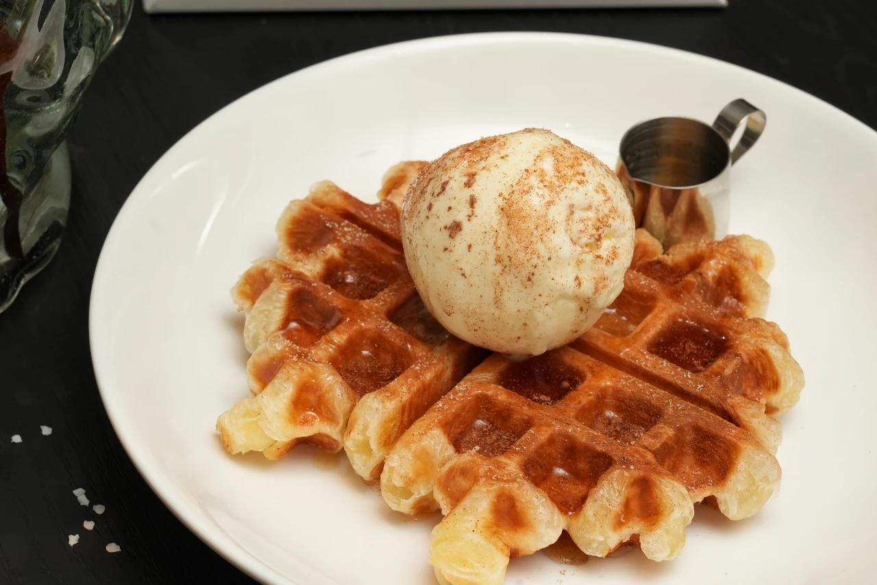 餐點方面,打破可頌如海螺般外型,帶來可頌球、貝可頌、可頌吉拿棒,以及可朗芙共4款代表性可頌。首推風靡全世界的可朗芙「楓糖炸雞可朗芙450元」、「香草冰淇淋可朗芙360元」,將可頌層疊的麵糰壓製為列日鬆餅樣貌,金黃酥脆又帶有酥軟口感。