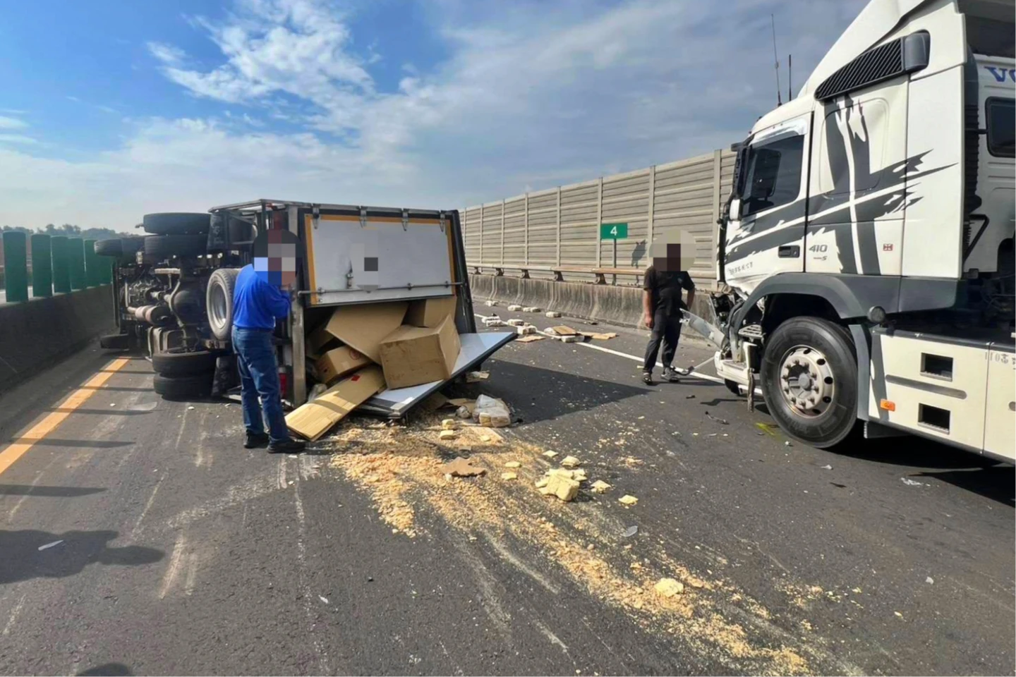 台88線3車連環撞!曳引車變換車道害小貨車側翻 車流塞爆1小時