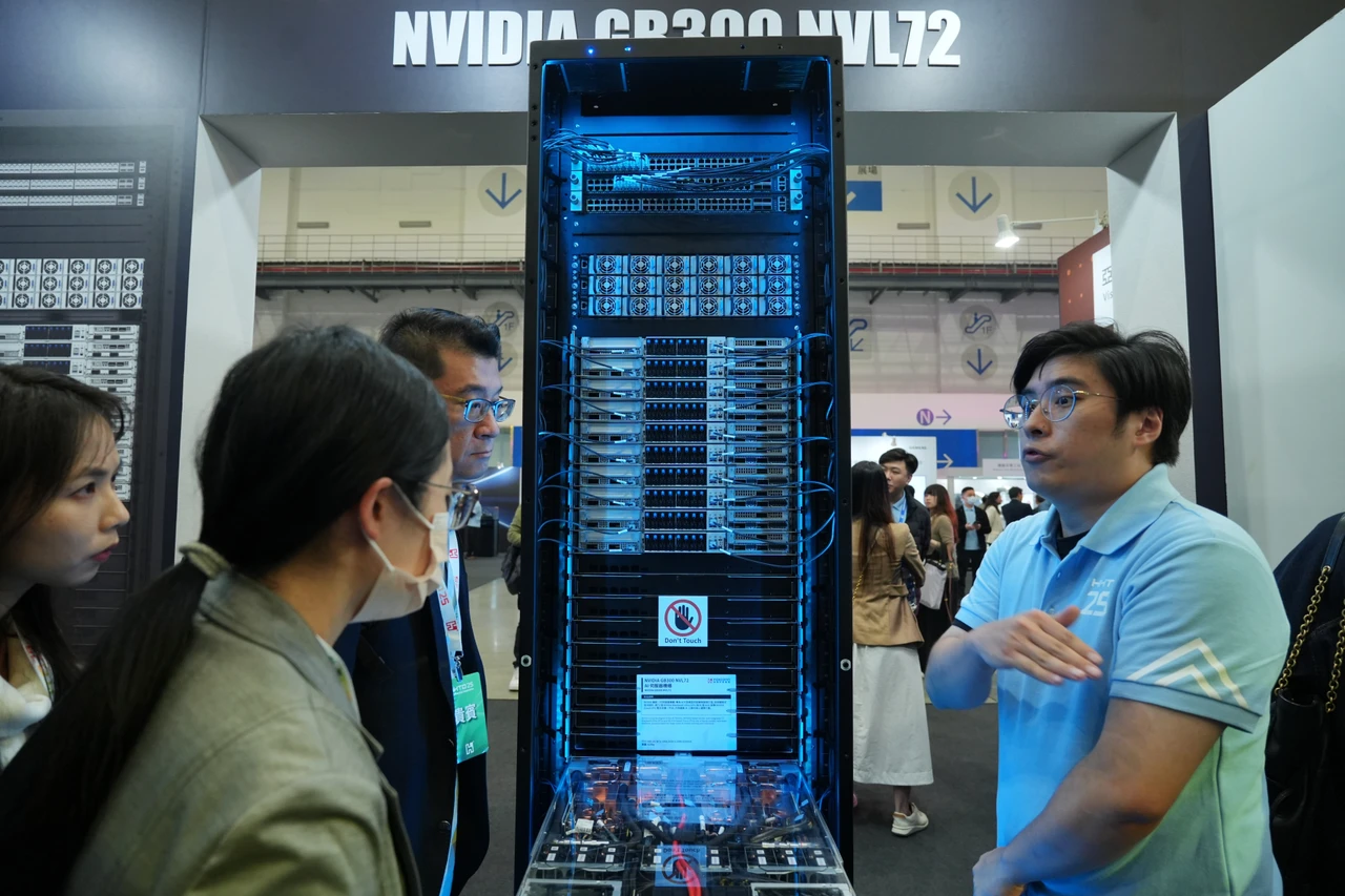 鴻海今年在「AI Factory」展示NVIDIA GB300 NVL72 AI伺服器機櫃系統、AI資料中心高效散熱全方案及內部高速連接器等AI基礎設施關鍵解決方案,同時呈現超級算力中心與生態系統平台,全面展現在AI領域研發、製造與應用的垂直整合實力。