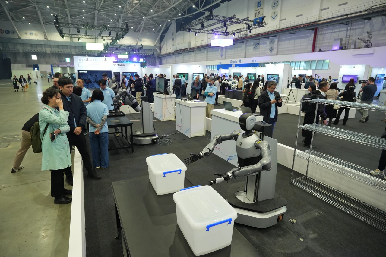 另外在機器人部分,鴻海今年更是首次在現場展出工業級AI人形機器人、晶圓搬運機器人、遙控操作靈巧手以及服務型人形機器人。同時,還分享了基於數位孿生中,Al機器人精密組裝工站的運作情形,看AI如何幫機器人「練功」。