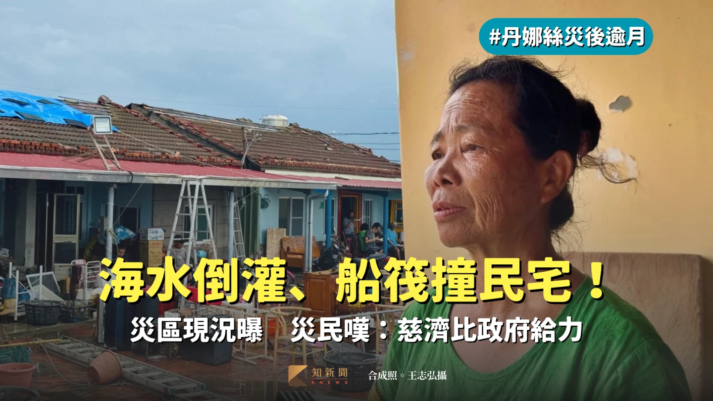 【記者王志弘/台南報導】強颱丹娜絲上月重創台南,七股西寮里遭海水倒灌、強風掀翻屋頂,面目全非,災民苦不堪言。《知新聞》於災後一個月走訪西寮里,仍可見風災摧殘的痕跡,師傅忙著搶修破碎屋頂,慈濟志工清運雜物,民眾整理家園更不得閒。里長心有餘悸回想颱風夜急著四處救人、災後第5天才看到大官勘災,破損屋頂都靠慈濟志工修繕;一名老婦忙著清理家園,直嘆:「很累很累!大官來嘴巴講講,還叫老人自己爬屋頂,但看不到政府資源,不應該啊!」希望中央提高補助,給重災區較大的照顧。