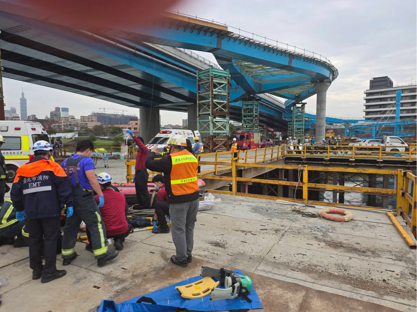 民權大橋工程爆意外!車輛突墜河2受困 1男命危