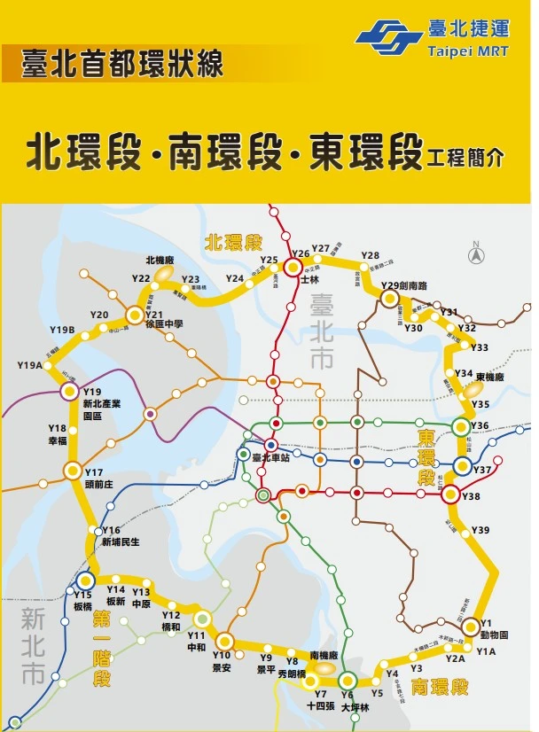 捷運局進一步表示,台北都會區捷運路網在台北市中心區以格狀路網連接重要幹道,再往外沿重要廊帶以幅射狀路線向外擴展。環狀線規劃構想乃在以環形路線串連台北都會區輻射捷運路線,環狀線第一階段(大坪林站-新北產業園區站)已通車,環狀線第二階段包括興建中的南環段、北環段及東環段,將建構「一車到底」的環形路網。