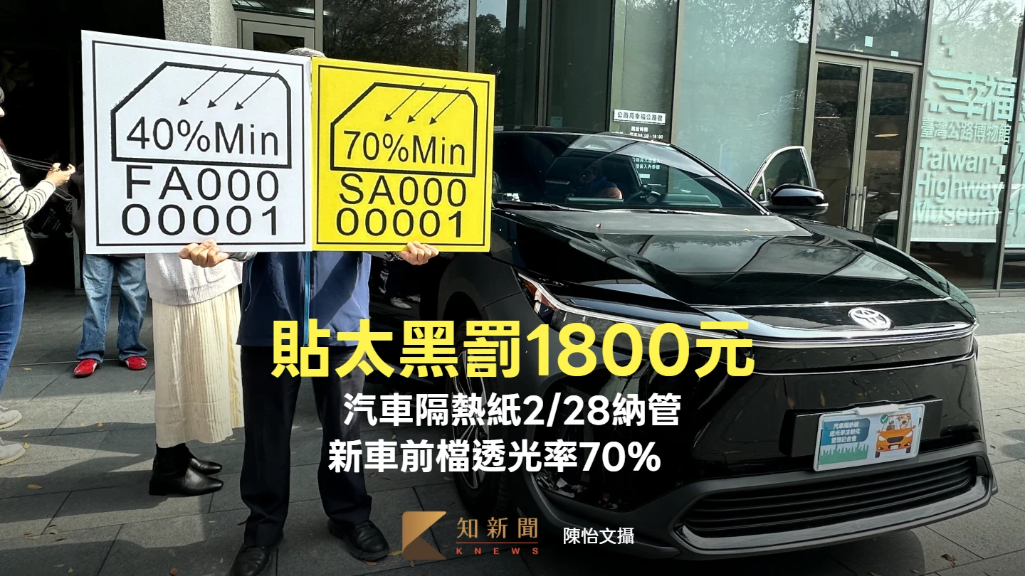 【記者陳怡文/台北報導】根據公路局統計,每年新領小客車數量約40餘萬輛,因我國地理環境及天候條件,國人用車習慣多考量隔熱、隔離紫外線或降低眩光等因素,汽車常有黏貼隔熱紙之情形,但貼太黑影響行車視線,交通部納管新車隔熱紙,前擋透光率70%以上、前側40%以上,後側窗及後窗基於隱私考量無訂定,自115年2月28日起新登檢領照汽車需貼合格隔熱紙,不合格可處最高1800元,嚴重甚至可以註銷車牌,公路局今(2/3)也公布「合格標識樣式」及黏貼位置,目前已有26家合格報告審核,共計378型號。