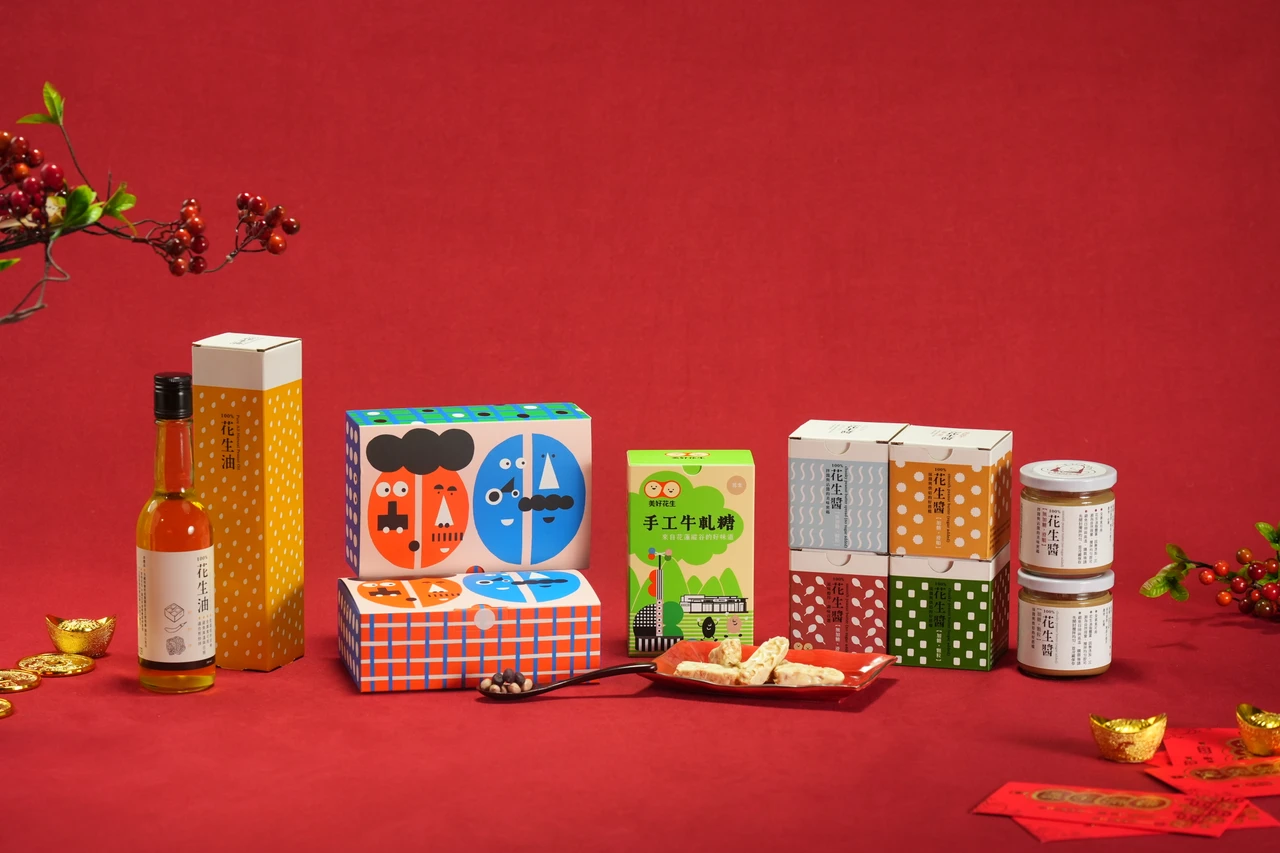 這次推出的年節禮盒,收進了品牌最具代表性的幾款商品:花生醬、花生牛軋糖、花生酥與花生油。每一樣都以花生為主角,做法不複雜,卻需要時間與耐心累積風味。花生醬保留自然油脂與顆粒口感,適合日常搭配;花生牛軋糖甜度克制,口感紮實;花生酥酥香分明;花生油香氣純正,下廚時存在感恰到好處。