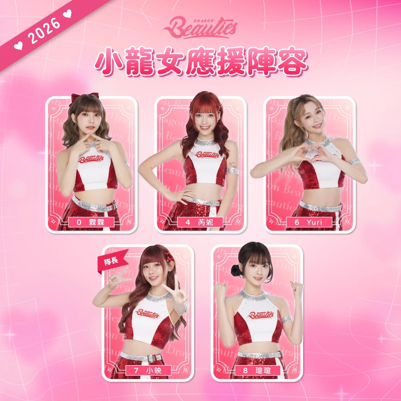 【記者陳雍仁/台北報導】味全龍啦啦隊「Dragon Beauties 小龍女」今(9日)公布2026年度陣容。球迷粉絲最為關注的超人氣韓籍成員李多慧,以及金娜妍、權喜原「三本柱」皆續留隊中,原練習生「瑄瑄」、「姵宸」及「貝拉」則將在新球季轉為正式成員,另補強兩名新練習生,分別是擁有迷人電眼的「張愛」與可愛魅力爆棚的「佳依」,一同為團隊增添新戰力。