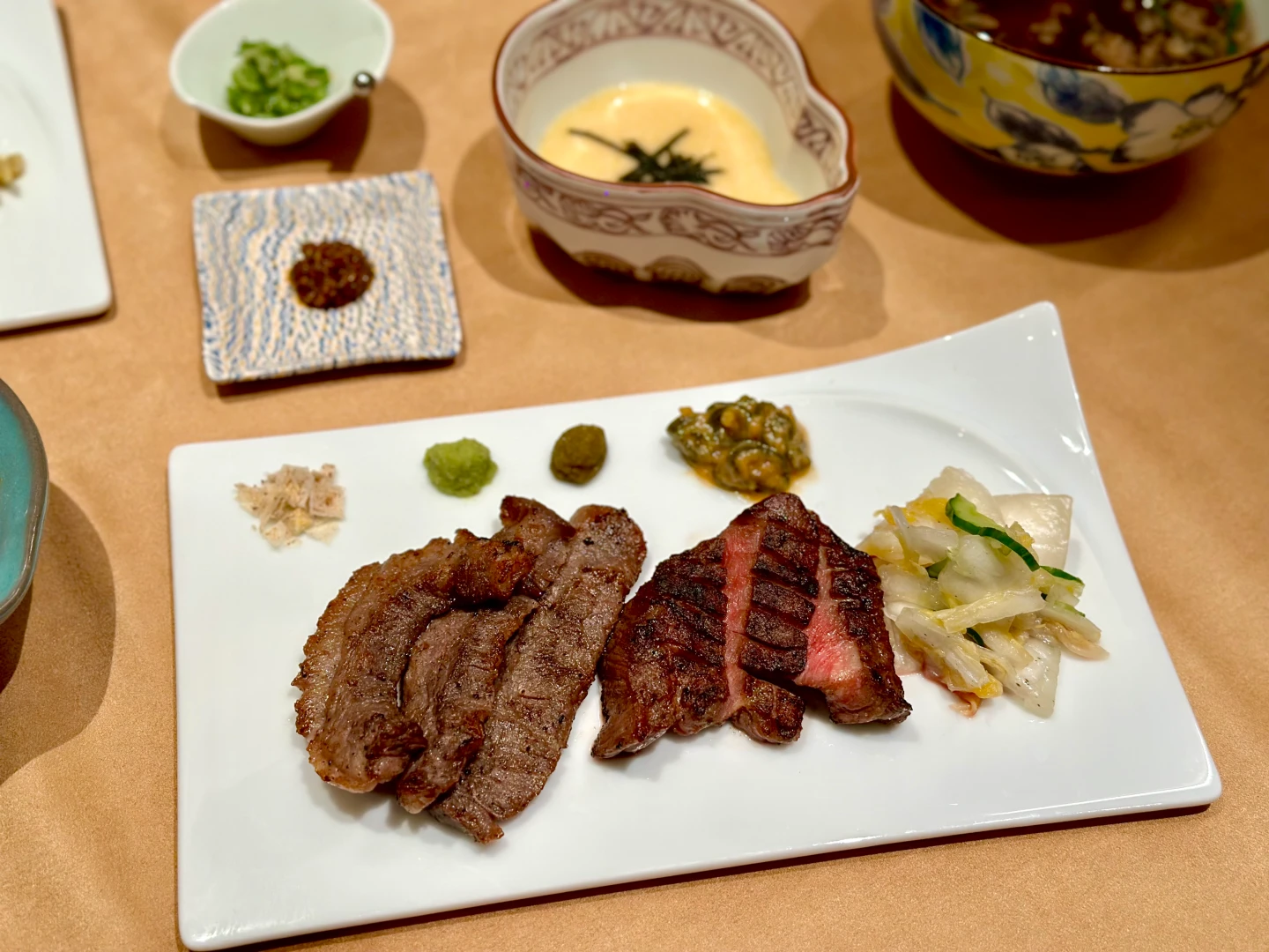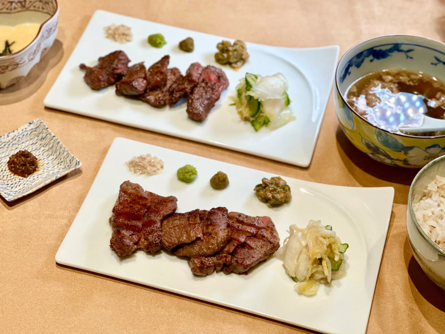 此外,菜單還有推奢華雙拼,包含「上選牛舌+和牛牛五花定食590元」、「A5和牛紐約客牛排+伊比利豬Bellota本日部位定食600元」等定食,套餐含山藥泥、麥飯、牛尾湯等,價格介於380元至810元,另收一成服務費。