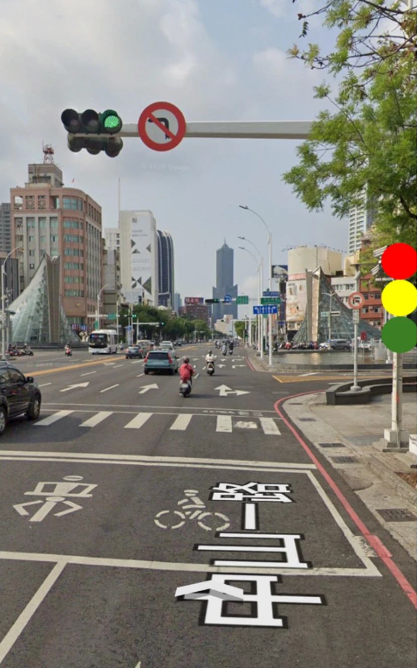 高雄市議員白喬茵說,交通局應檢視該處停等區位置是否有部分角度看不到正上方的號誌跟左前方的號誌的狀況,如有視線死角應調整停止線位置與號誌角度,避免機車用路人誤判。