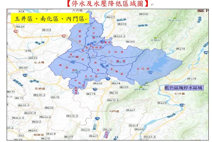 | 全區停水 | 左鎮區、大內區、山上區 |