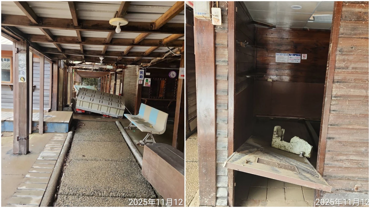 李明哲指出,知名的蘇澳冷泉園區與阿里史冷泉兩處災情慘重,園區內的湯屋與露天池等設備幾乎都是泥巴,大量泥水擱置池中,營運全面停擺。目前正透過縣府協助展開抽水作業,後續將由人工下池清洗,並評估設施維修狀況。