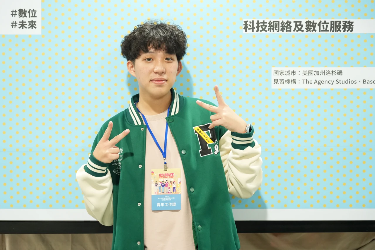 此外,田峻丞、江青郁及李啓源是參與計畫第一年,海外翱翔組「鏡頭後的影視世界」的青年,他們前往美國加州洛杉磯好萊塢2週,學習影視製作。