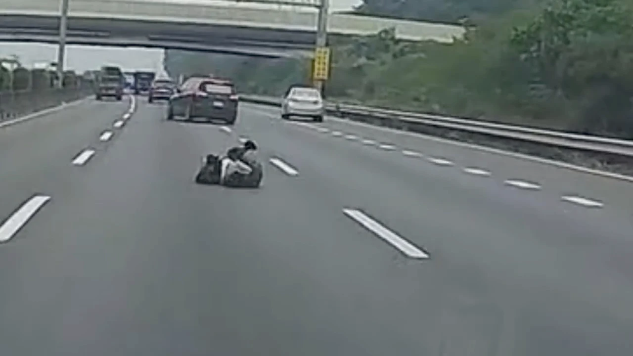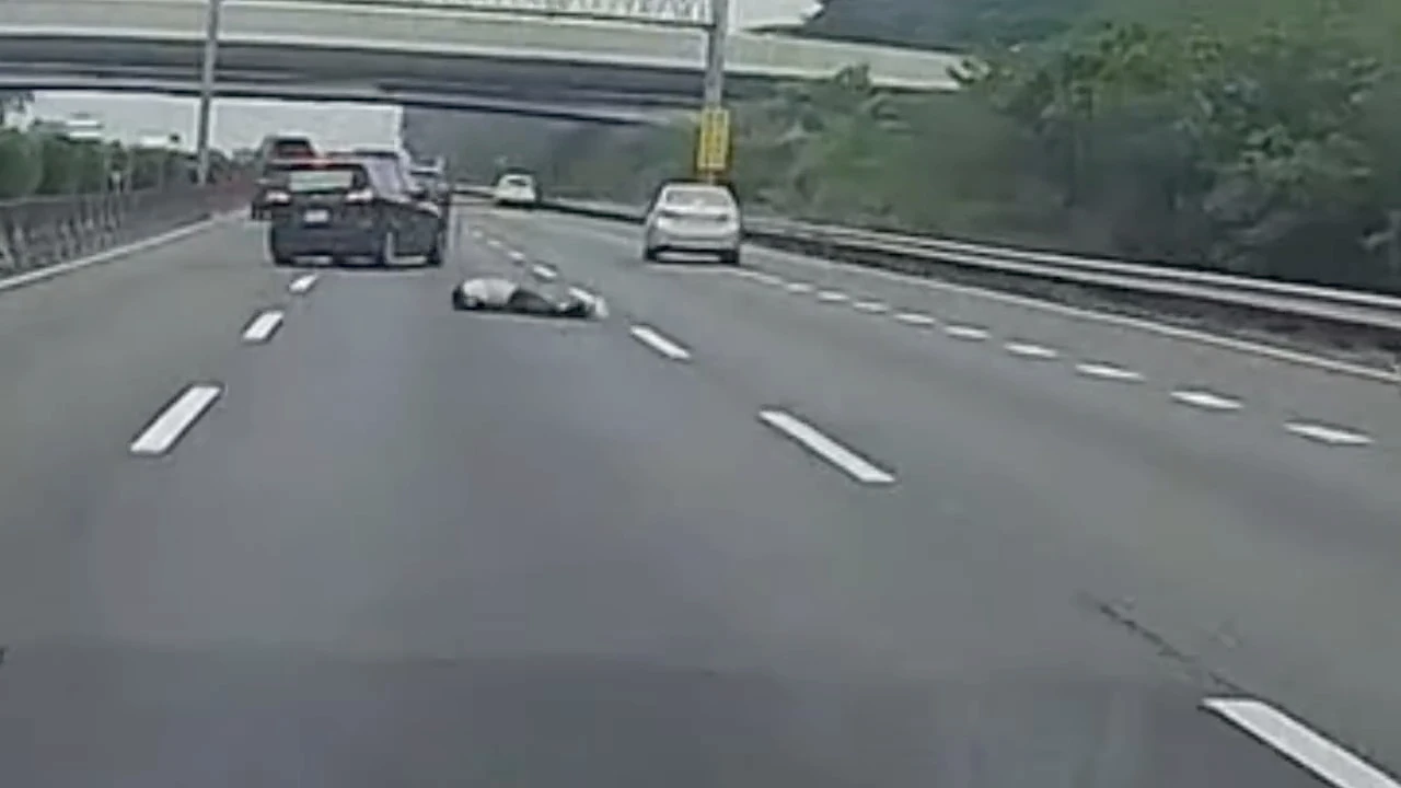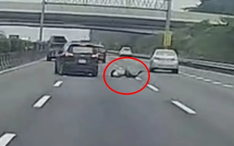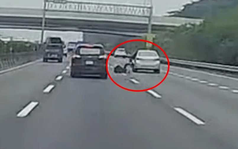 【記者陳力維/綜合報導】國道一號高雄楠梓北上路段日前發生一起罕見的離奇事故。有民眾在網路社群發布一段行車紀錄器影片,畫面顯示,一輛銀色自小客車行經高速公路外側車道時,後座乘客竟在車輛行駛途中突然摔出車外,整個人滾落到中線車道上。該名男子隨後自行緩緩起身,並離開現場,而涉案的銀色小客車則未停車查看或靠邊處理,逕行駛離,情況相當詭異。