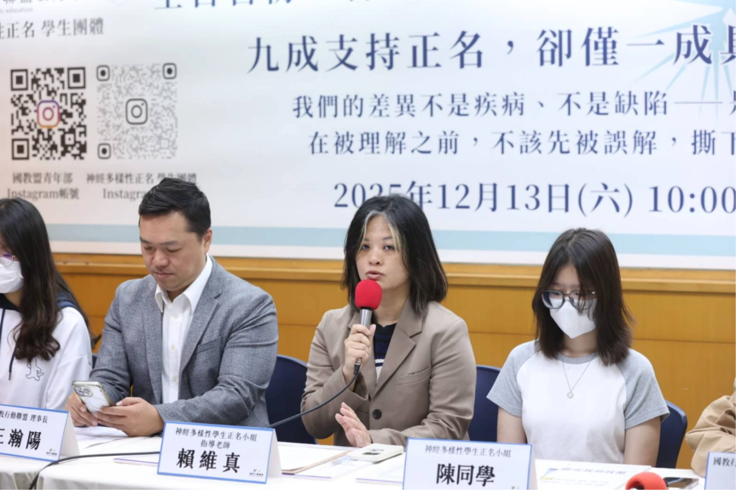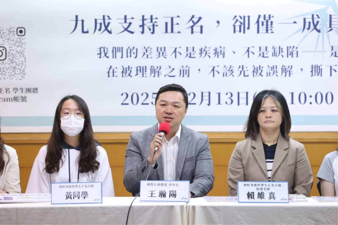 台灣青少年神經多樣性行動協會秘書長黃慕仁表示,許多家長因社會對病名的想像太負面,導致不敢面對、不敢就醫,神經多樣性的正名,是鬆動社會污名的關鍵,呼籲政府加快公共溝通,不僅要改良教材,更要全面檢討社會溝通平台、行政對話、媒體標題與家長手冊等,確保正名能落實。