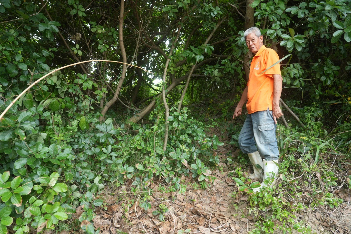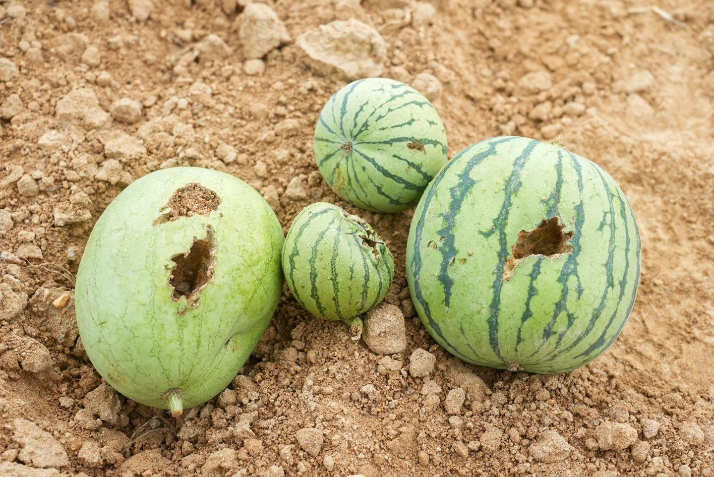 農民陳再德已經79歲,但身體相當硬朗,他種植西瓜、土豆、番薯等作物。走進他的西瓜田,一顆顆圓圓西瓜佈滿,看似能有豐富收成,但仔細一看,許多西瓜上都有不小的孔洞,是因孔雀啄食而造成。