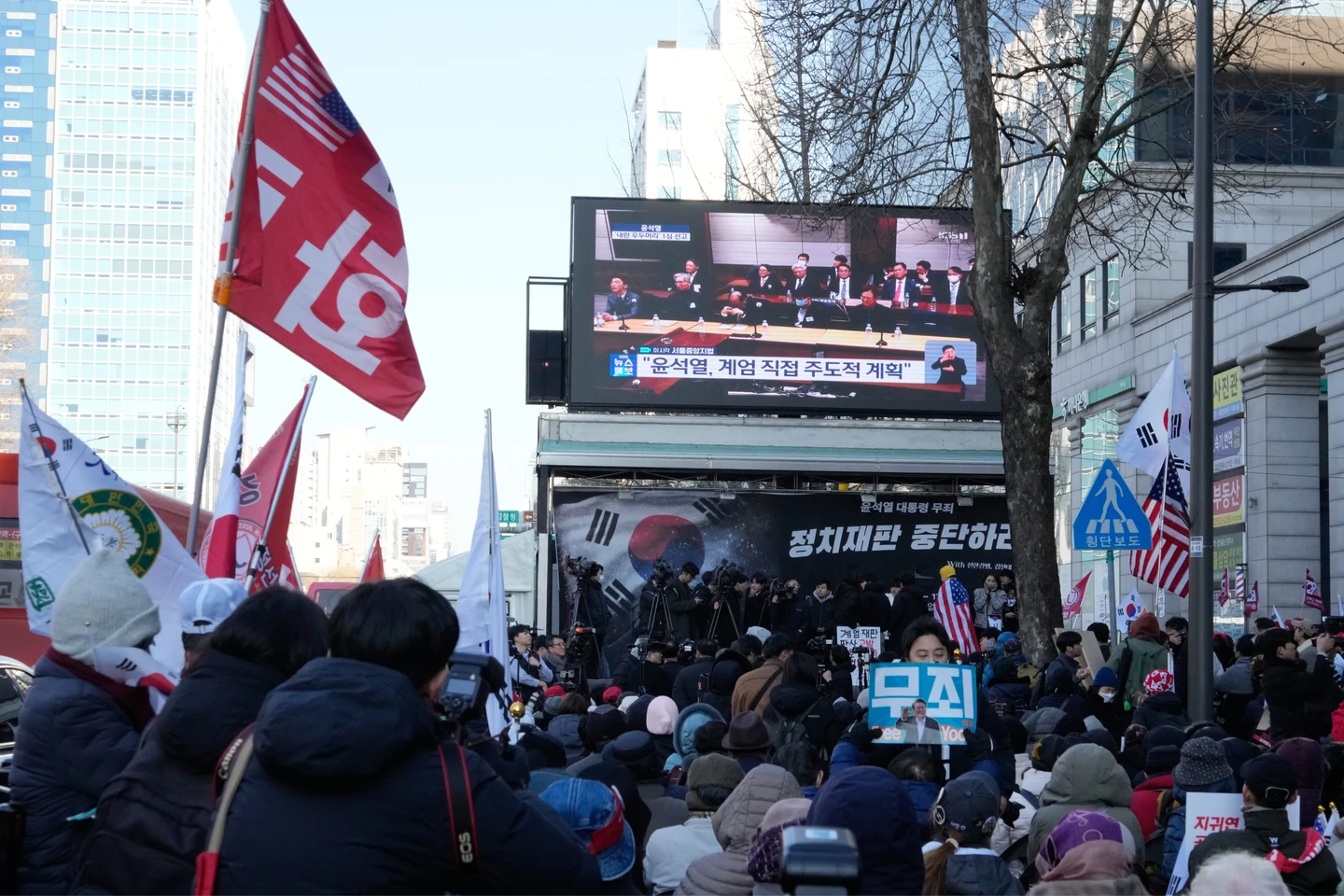 65歲的尹錫悅穿著深藍色外套和襯衫,在審判開始前幾分鐘抵達幾乎座無虛席的法庭。在一個小時的審判過程中,他靜靜坐著聆聽法官的判決。在當他離開法庭時,一些支持者高呼聲援「尹錫悅東山再起」(Yoon Again!)的口號。