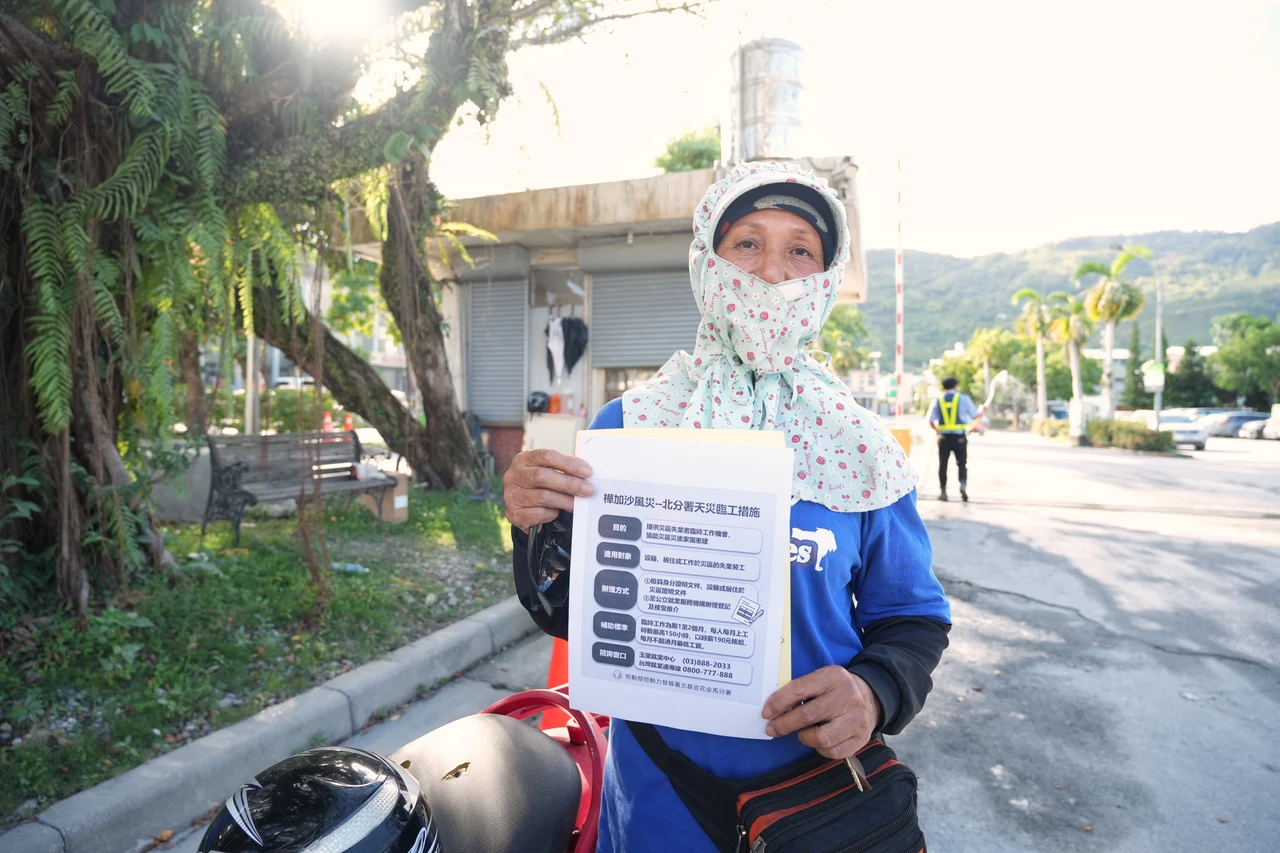 蘇阿姨說,他是朋友介紹才知道天災臨工措施,自己現在沒有工作,也有意打零工,因此前來登記意願。她也提到,這次洪災家中沒有太大影響,因此才想說參與天災臨工,可以幫個忙,也能有一些收入。